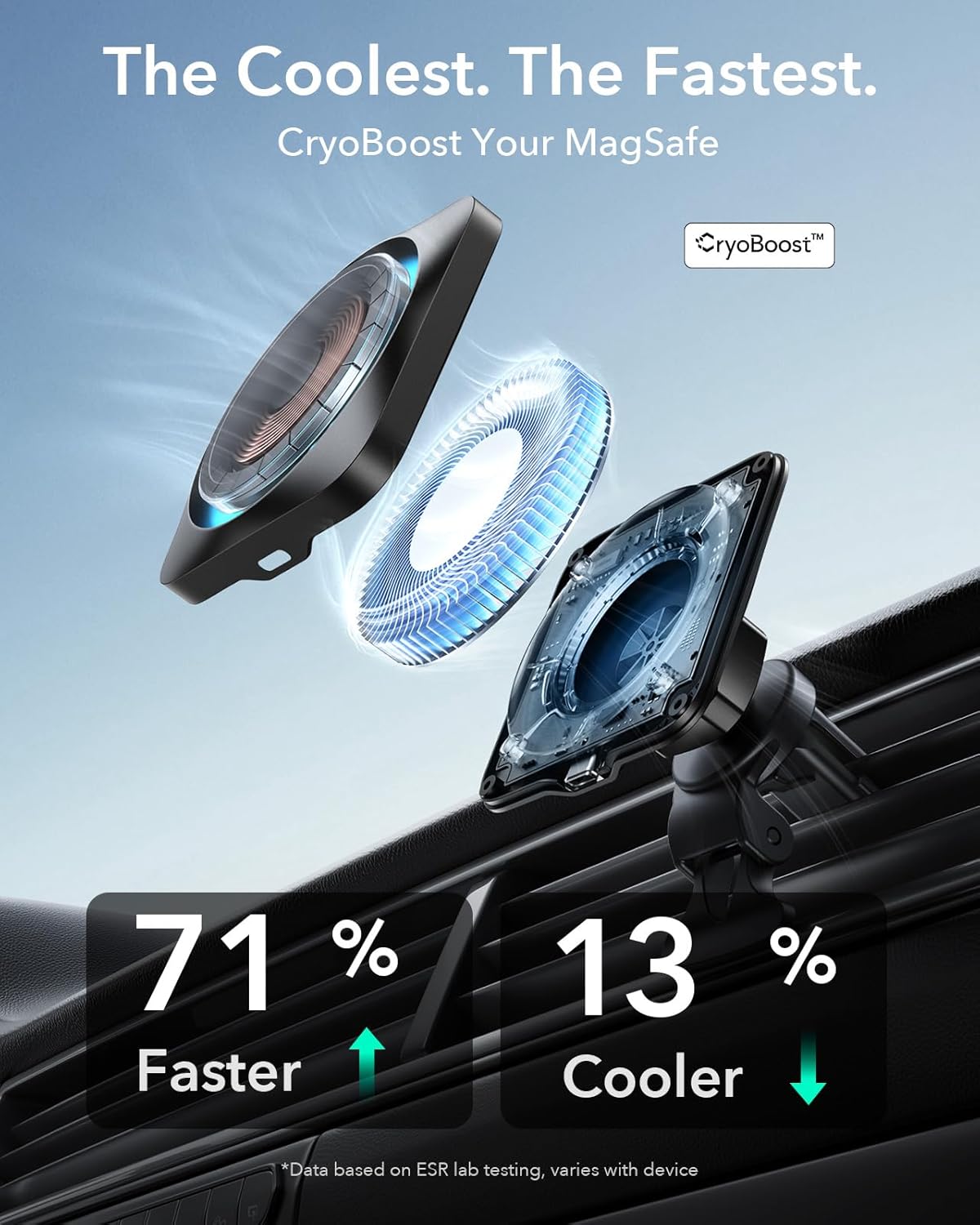【Phone Cooling】 ESR for 15W MagSafe Car Mount Charger with CryoBoost, MagSafe Car Charger, Air Vent/Dashboard Car Phone Holder for iPhone Air/17/16/15/14/13/12 Pro Max, S25, Pixel 10