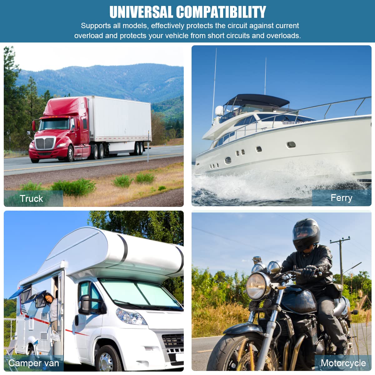 [Universal Compatibility]–Car fuses assorted kit is used for most vehicles(Cars, Truck, SUV, ATV, boats, motorcycles, industrial applications ,UTV, Camper RV, Motorcycles, etc). Support all models, effective protection circuit to prevent current overload. Protect your vehicles from a short circuit and overload.