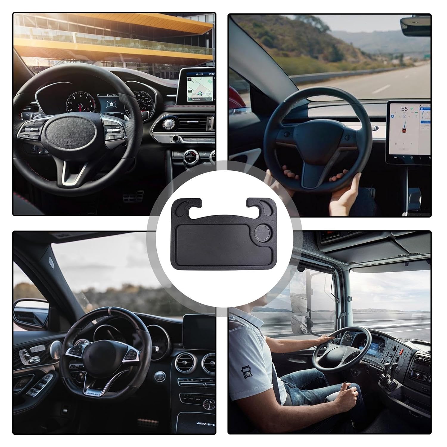 Portable Car Steering Wheel Desk Table?Multi-function Steering Double sided Trays?Car Steering Wheel Desk, 2 In 1 Multi Function Portable Auto Food Tray Table For Most Vehicles Steering Wheels