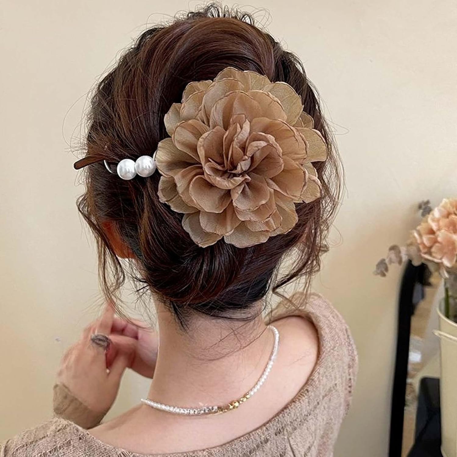 Stylish Korean Hair Accessories: These hair clips for women feature elegant floral designs, perfect for enhancing your hairstyle; The set includes three different colors (purple, pink, brown) to match various outfits and occasions.