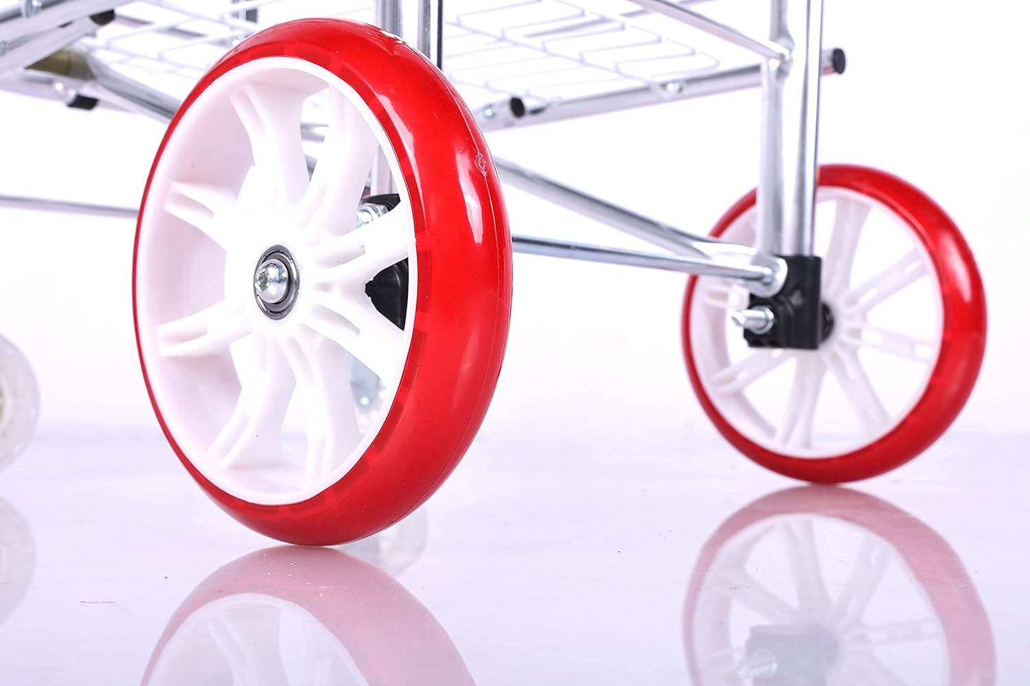 Our folding utility cart folds flat allowing you to easily store it anywhere you want. Thanks to its lightweight and foldable design, it’s perfect for use on the go. This foldable shopping cart with wheels is small enough to easily fit inside your car’s trunk making it perfect for use when shopping.