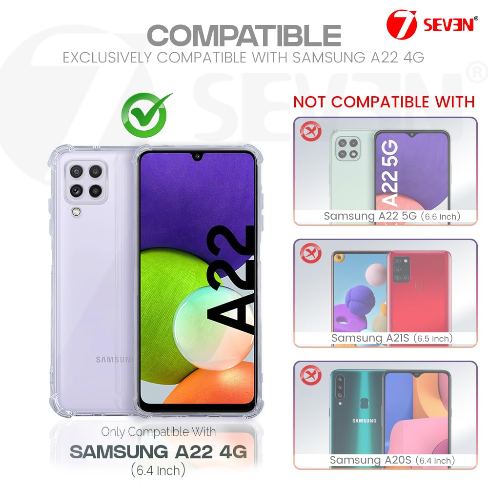 7SEVEN® Back Cover for Samsung Galaxy A22 4G Transparent Mobile Back Case Shock Proof Design Camera Edges Protection Crystal Clear Phone Case Silicon Soft TPU and Flexible Bumper Phone Cover