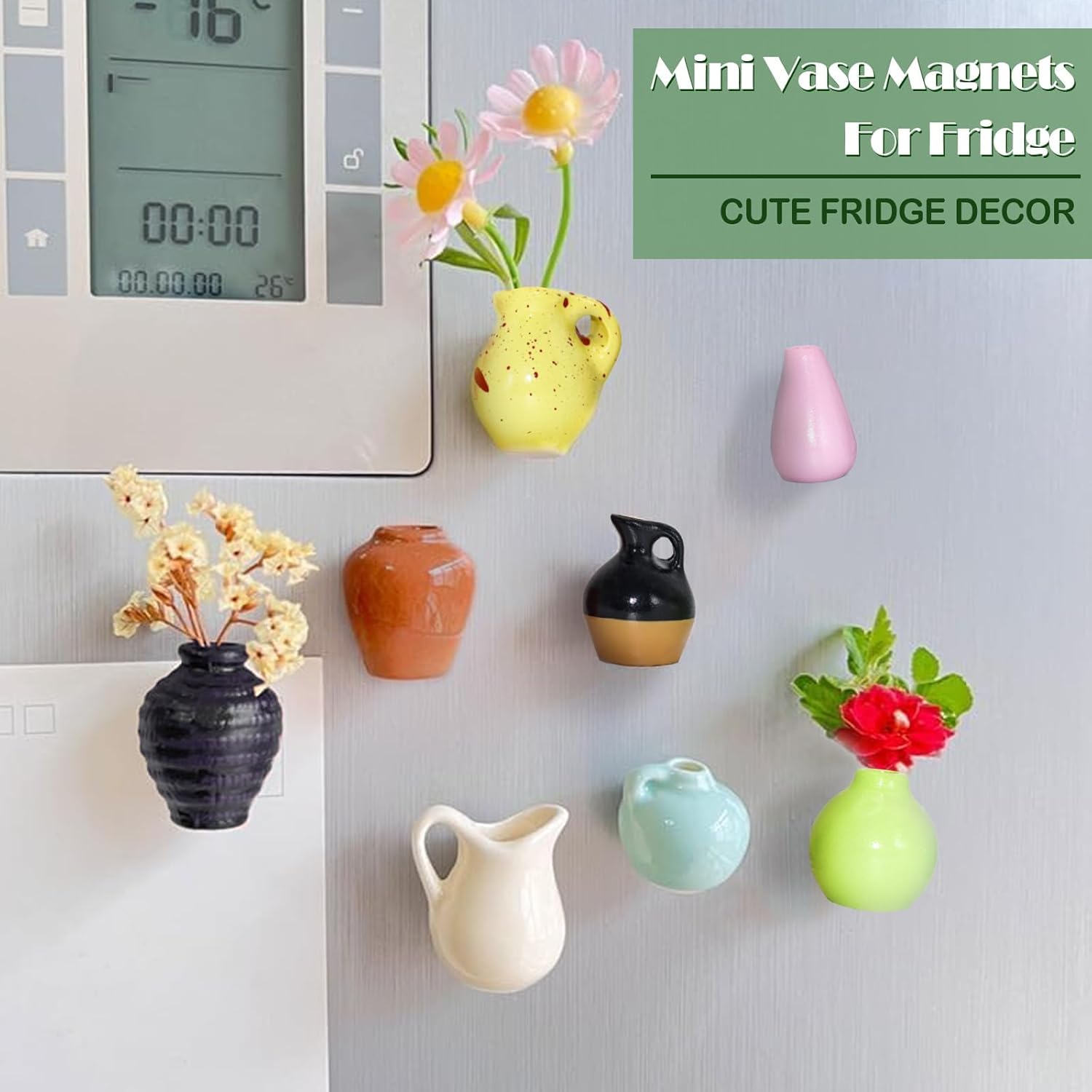 Vibrant Multi-Color Options: Brighten spaces with 8 vivid shades: pink, yellow, green, blue, white, black, dark brown, and light beige. These mini vases fridge magnet pieces resist fading, adding cheerful accents to refrigerators, lockers, or metallic surfaces. Small size. Please do not purchase if you have any concerns.