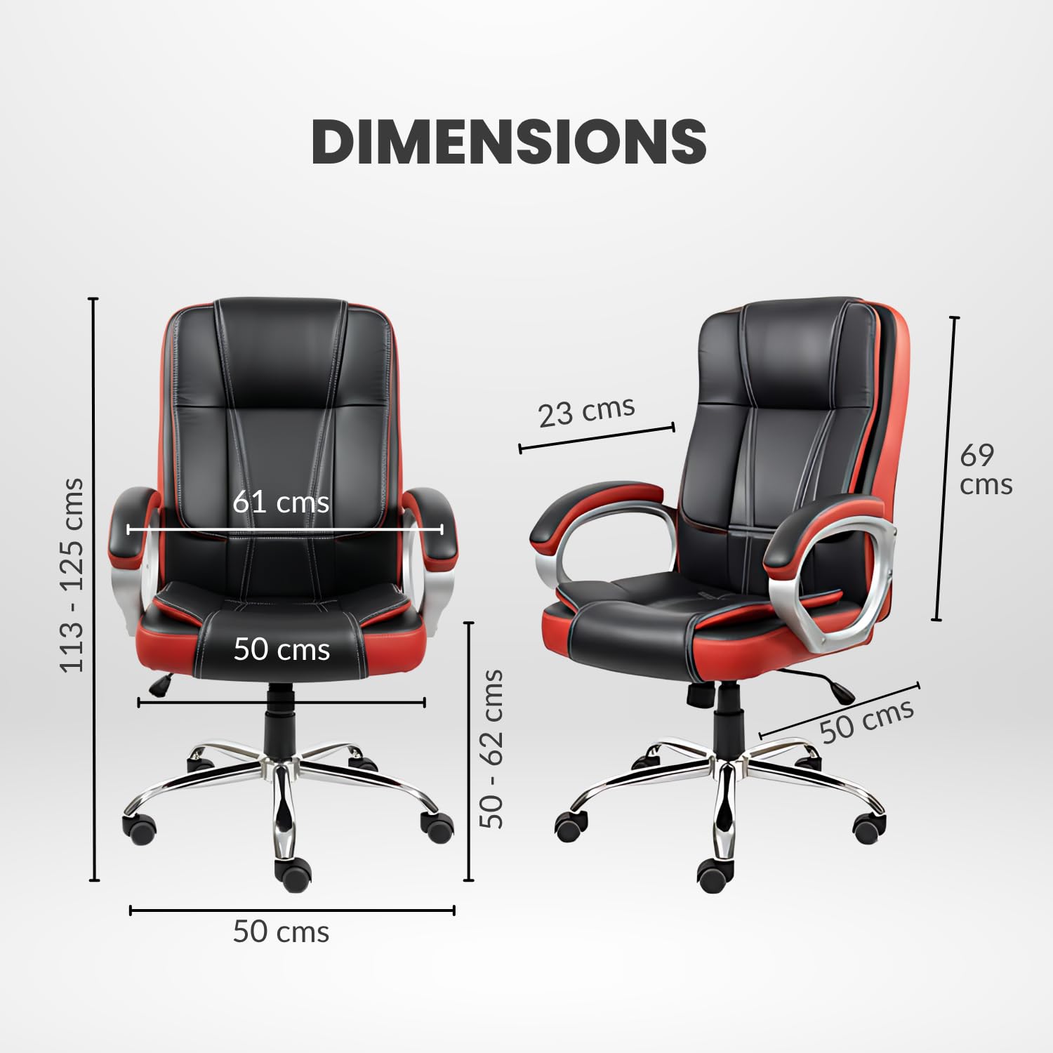 ACTIVA Ergonomic Office Chair | Leatherette Seating Chair with Adjustable Height| 3-Year Warranty| 360° Revovling Chair | Comfortable Padded Seating, Suitable for Office, Study (Venture, Black & Red)