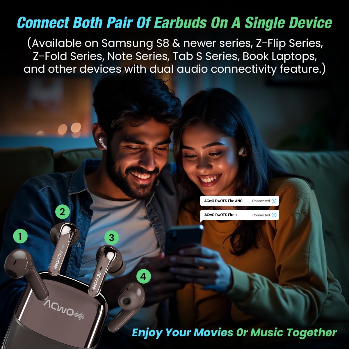 ✅ [Two Way To Enjoy Your Fire ANC]: Imagine the flexibility of sharing your favorite sounds in two different ways. With the ACwO DwOT Fire ANC, you can connect each pair of earbuds to separate devices – perfect for when you and a friend want to enjoy different content without compromise.