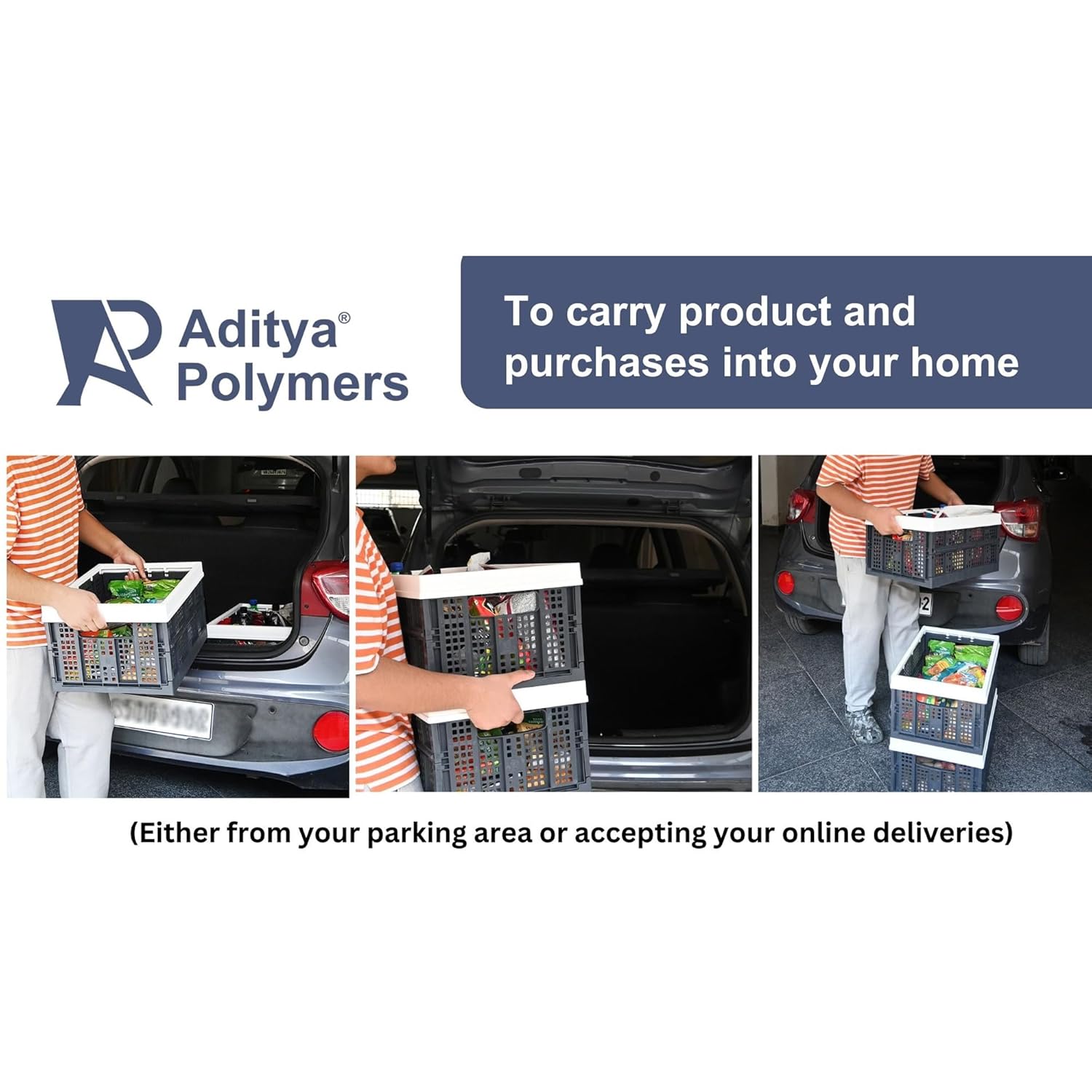 Aditya polymers-3 Pc. (25KG Capacity) Basket Folding Collapsible Plastic Multipurpose Heavy Duty Durable Polypropylene Foldable Crate For Stacking, Storage And Organizing, 45.7×34.3×25.4 Cm, Grey