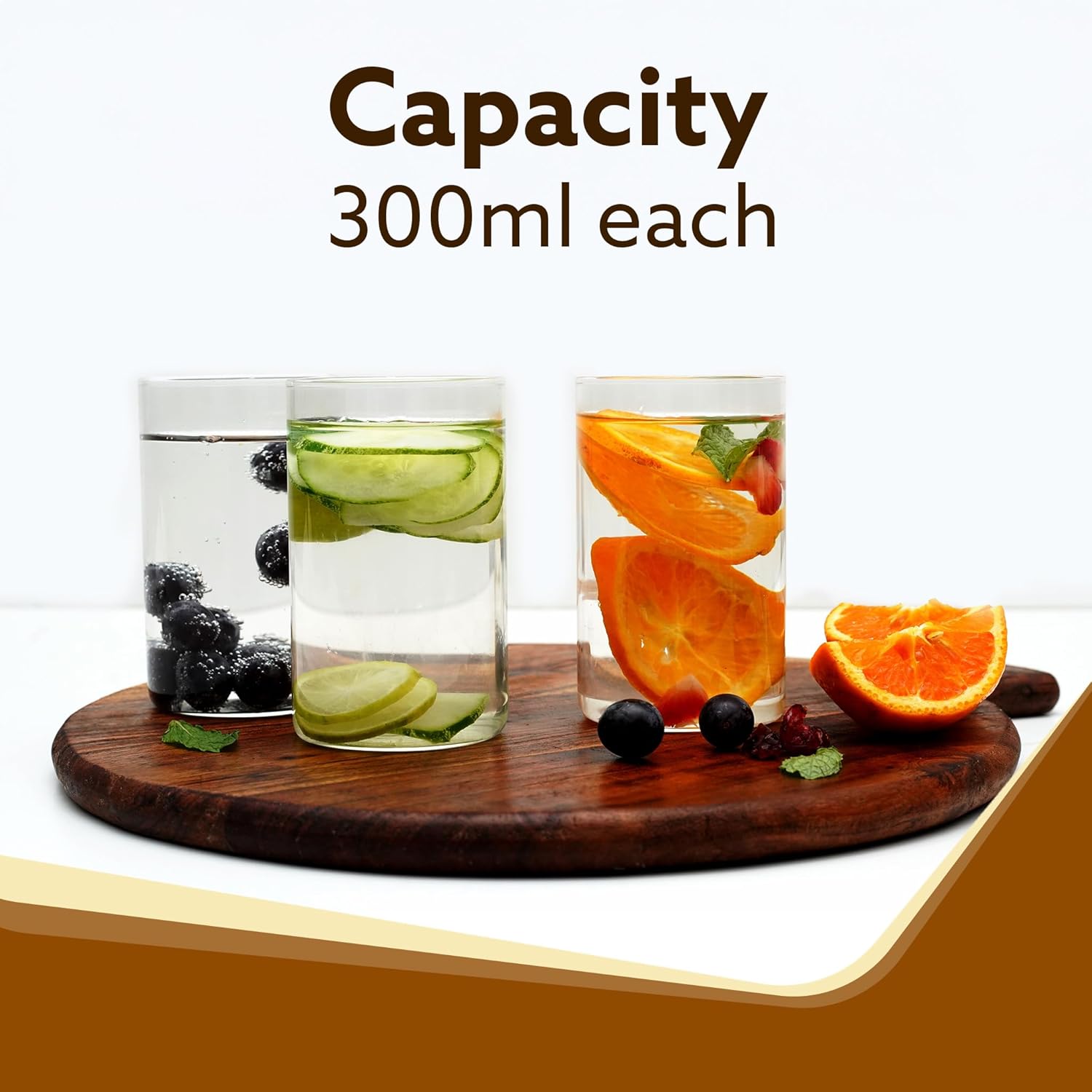 AGARO Elite 300 ml Glasses Set of 6, Transparent Drinking Water Glass Set, Borosilicate Glass Tumbler for Water, Cold Drink, Juice, Flame Proof, Microwave & Dishwasher Safe, for Daily Use & Gifting