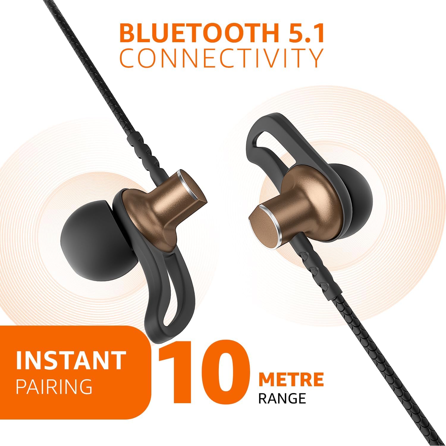 WIRELESS NECKBAND WITH MIC: In-ear wireless Bluetooth neckband with built-in HD mic and 10mm dynamic driver that offers exquisite sound details with bass
