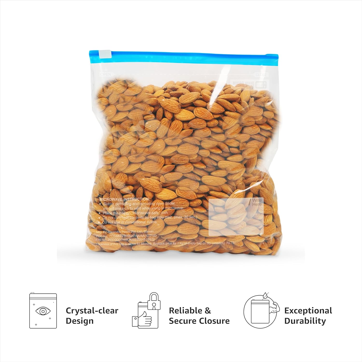 Amazon Basics – Multipurpose Slider Storage Bags | 45 Bags | Medium | 26 x 28 cm | Reusable and Reclosable | Material Plastic | Leak- Proof | Food Grade | Microwave Safe