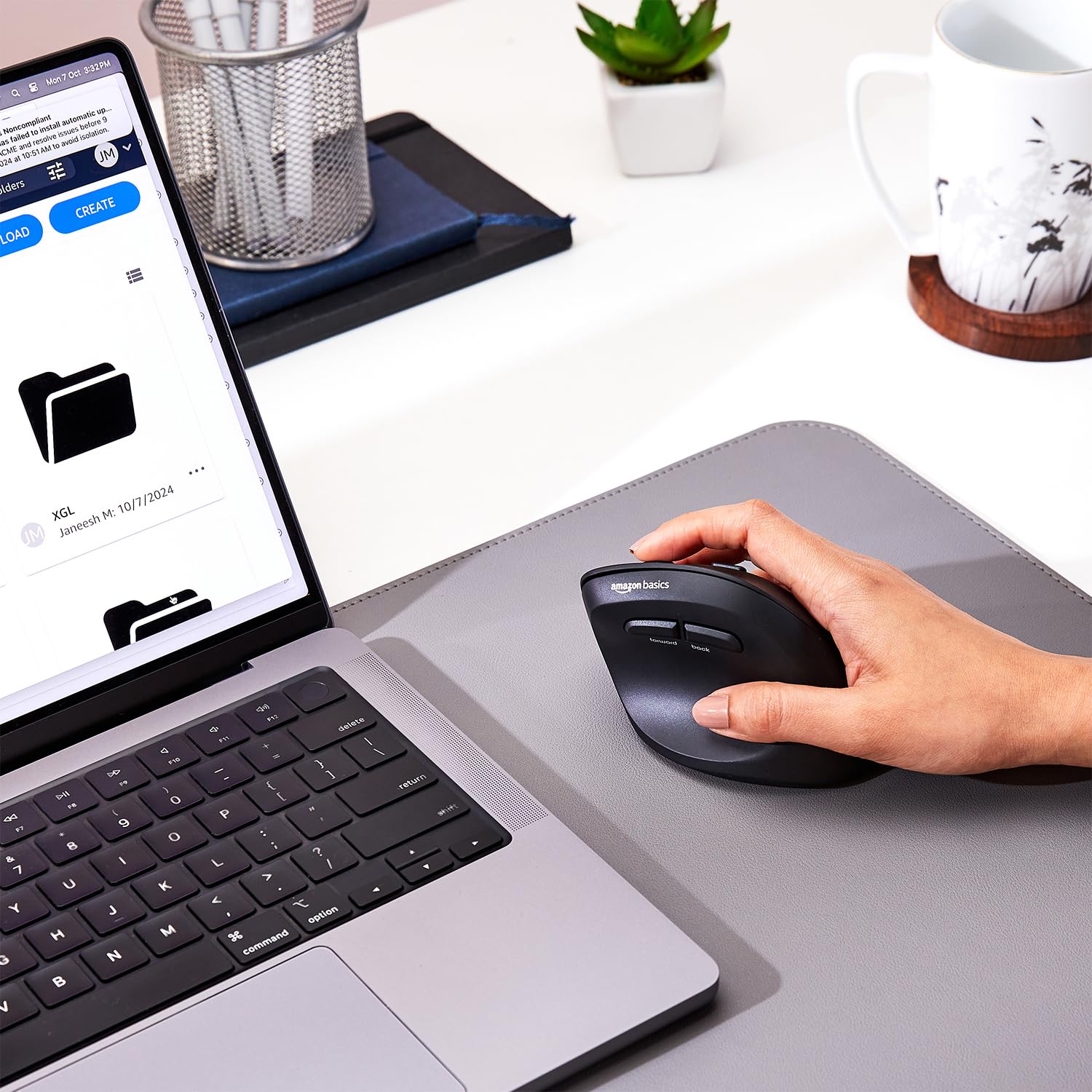 amazon basics Pro Series 2.4G Wireless Ergonomic Mouse for PC, Mac, Laptop | Dual Modes | 3 Adjustable DPI Settings Up to 2400 | Shortcut Buttons | Connects up to 3 Devices (Black)