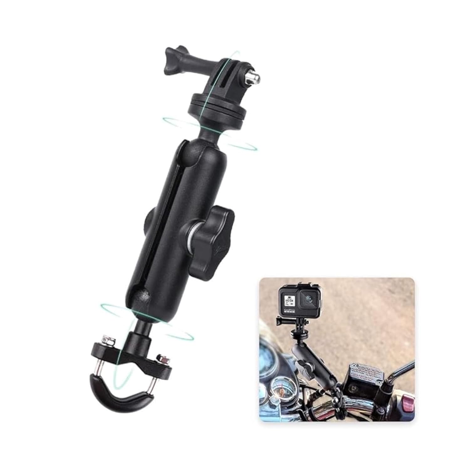 Like Star Action Camera (just for The Handlebar) Universal Mount for All Action Cameras Made of Aluminum Alloy with Two 360° Rotating Angle 1/4 Metal Stands