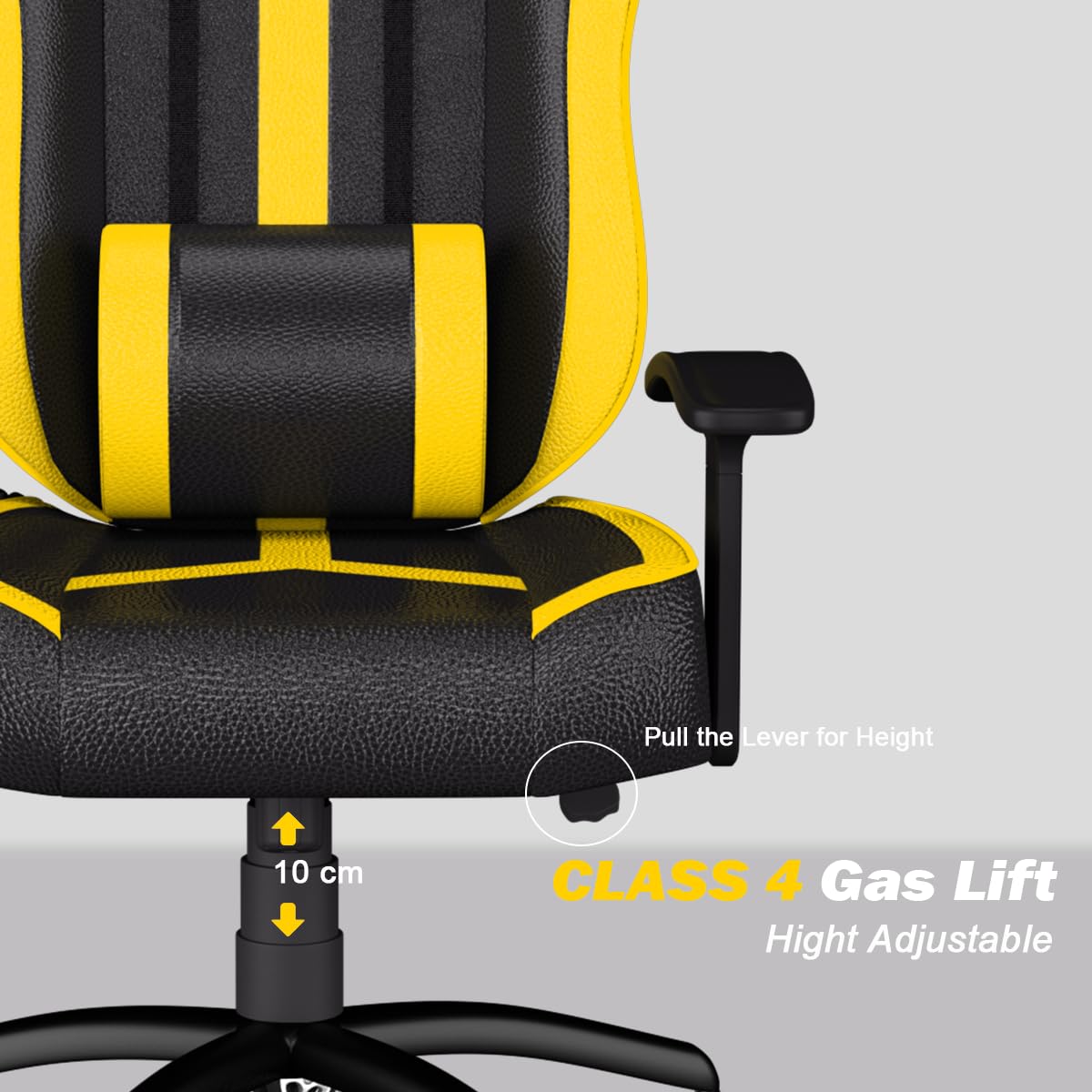 ASE GAMING Ranger Series Ergonomic Gaming Chair Premium PU Leather, Adjustable Neck & Lumbar Pillow, 180 Degree Recline with Black Metal Base (Yellow)
