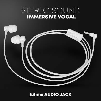Basic in-Ear Earphones with Mic Wired Headset (White, in The Ear)