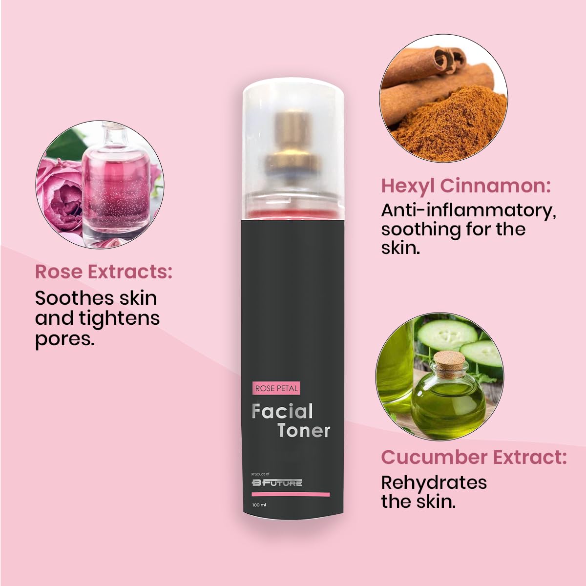 BFUTURE Facial Toner with Rose Extract for Pore Tightening, Hydration & Skin Refresh, Soothing Daily Toner for Men & Women, Face Mist Care, 100ml