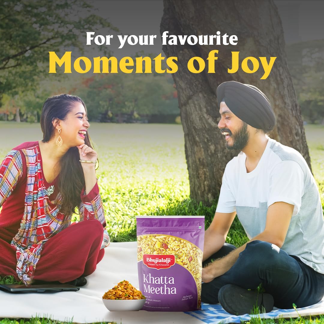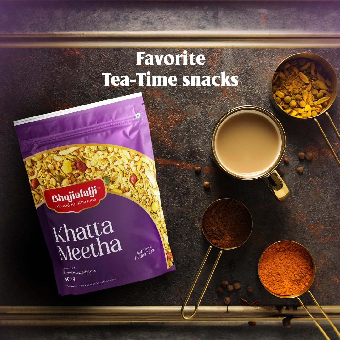 Elevate your tea-time experience with Bhujialalji Khatta Meetha. This pack is filled with tasty and crunchy namkeen snacks that perfectly balance sweetness and tanginess, making it an all-time favorite among Indian snack lovers.