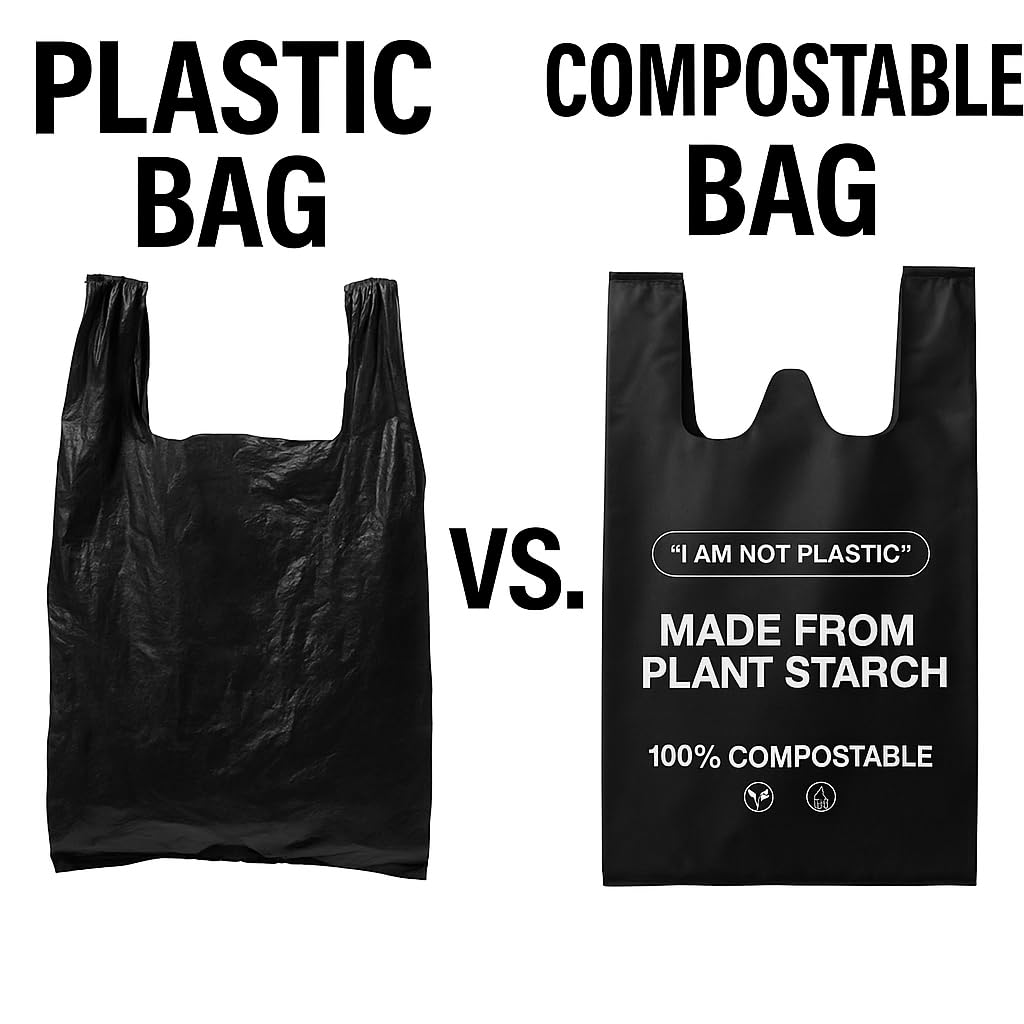 📦 Shipped with care and commitment to sustainability. BIOSUN 100% Compostable Biodegradable Black Carry Bags | Eco-Friendly, Plastic-Free Grocery & Storage Bags for Home, Kitchen, Retail & Daily Use | Certified