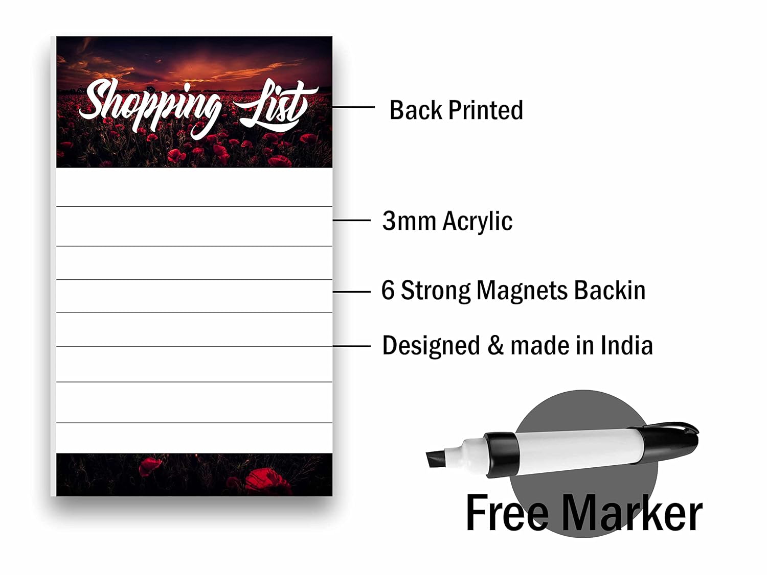 A super simple to use, no hassle product. Our BIRD’S MIND Stuff to-do shopping list board is a go-to product to make shopping easy and fun. You can use it as a fridge magnet or on a whiteboard or any iron surface like an almirah so that the list is in front of you to write or edit. Made of NON-bendable solid 3MM Glass acrylic. Writing on it is similar to writing on glass, it is just so smooth to write. Cleaning is easy and leaves no residual colors on the surface. Reusable and it will last you for years to come.