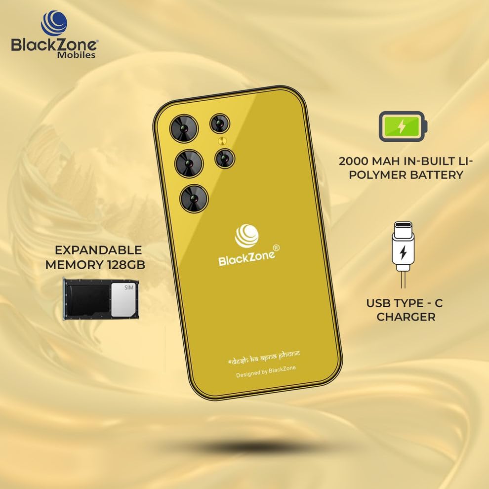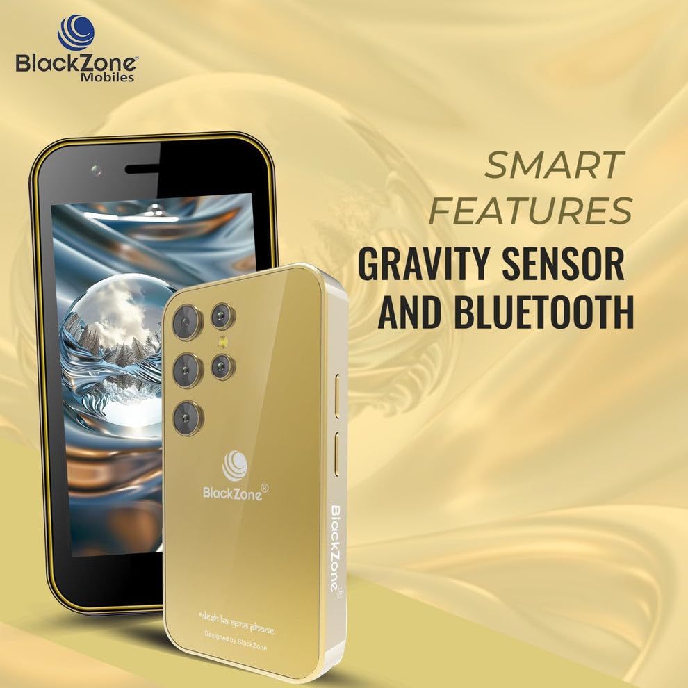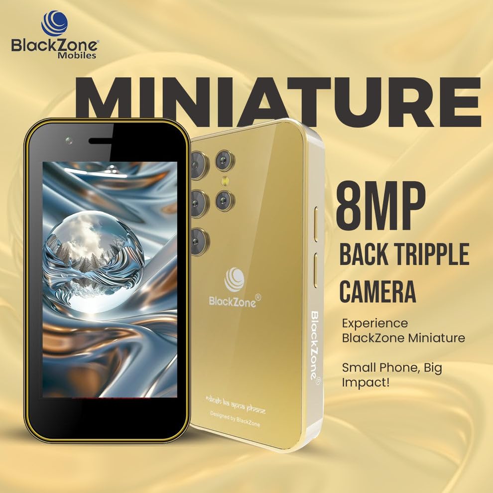 BLACKZONE Miniature 4g Volte Mini Smart Mobile Phone | 3.0′ Incell Display | 3GB RAM | 16 GB ROM | 8 MP Triple Rear Camera | USB Type C | 2000 mAh Battery (Gold)