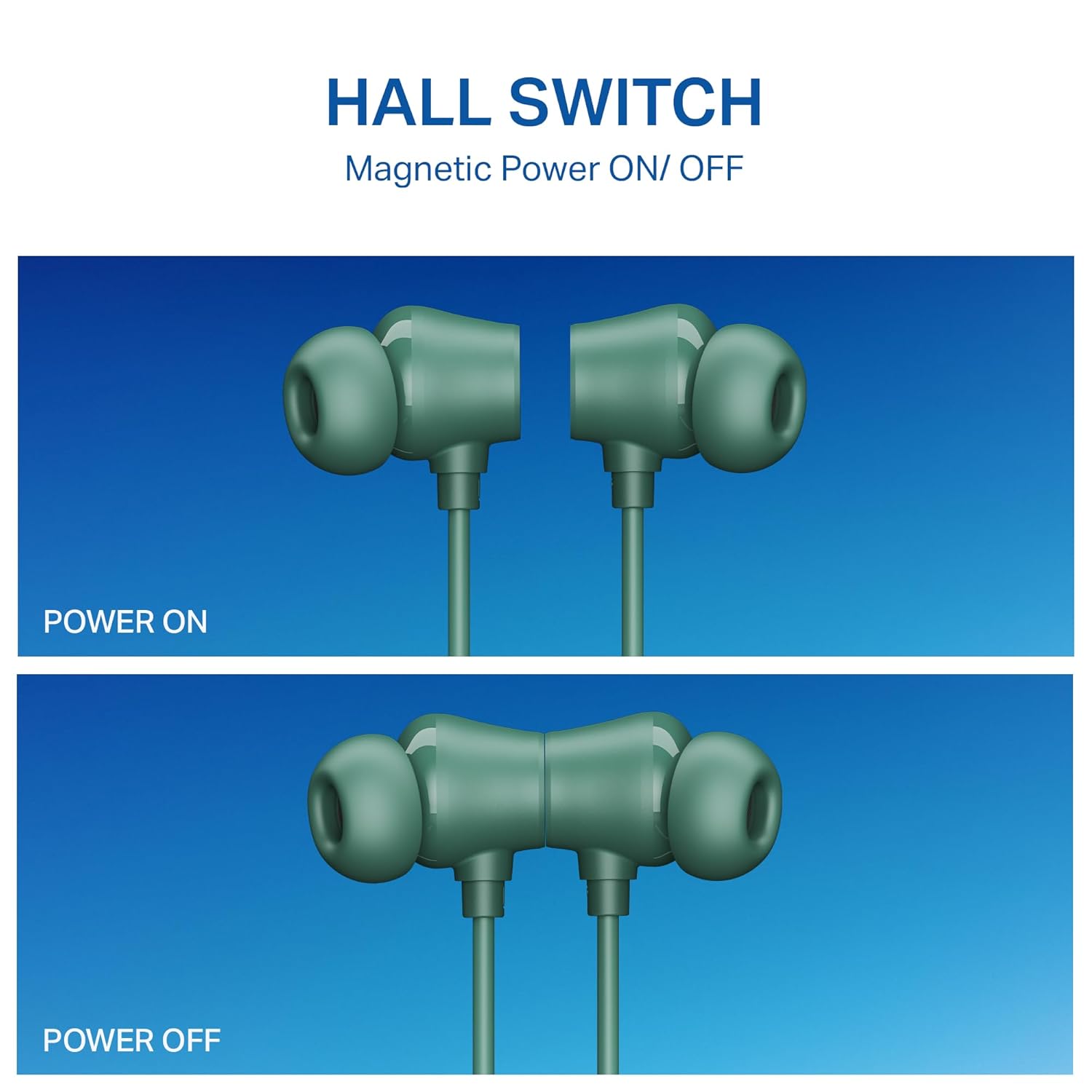 Hall Switch: Simply unite the earbuds to turn the neckband off and separate them to turn it on.