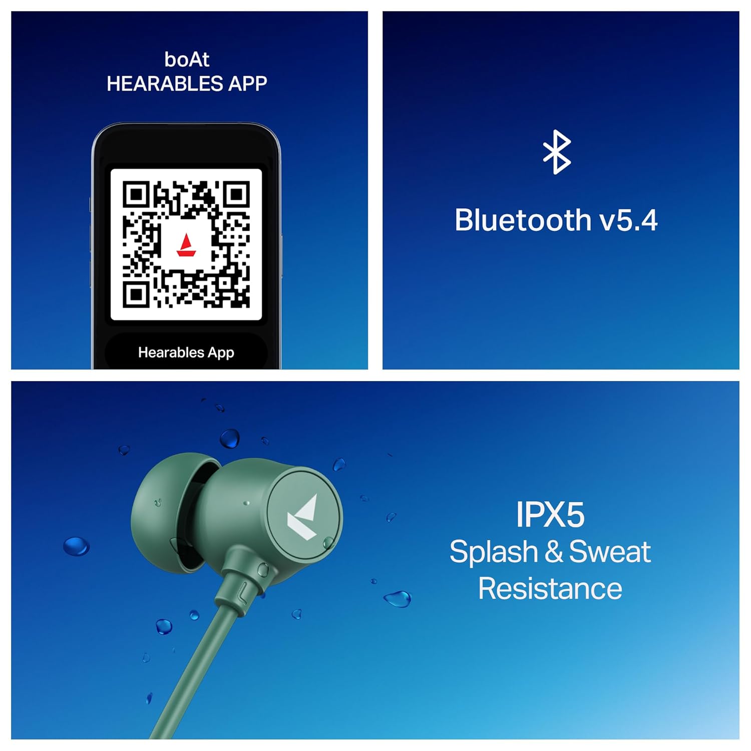 boAt 2025 Launch Rockerz 301 ANC, (~30dB) ANC, 13mm Drivers,ENx, 40ms Low Latency,Hall Switch,40H Battery, Stream Ad Free Music via App Support, Bluetooth Neckband, Wireless with Mic Earphones (Green)