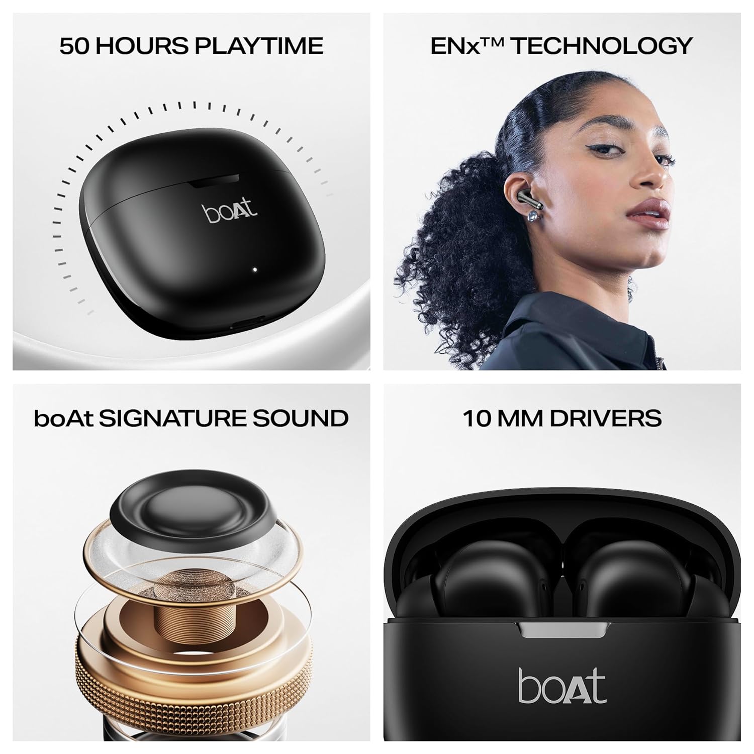 Boat Airdopes 213, 50H Battery, ENx Tech, Beast Mode, ASAP Charge, Bluetooth Earbuds, TWS Ear Buds Wireless Earphones with mic (Shadow Black)