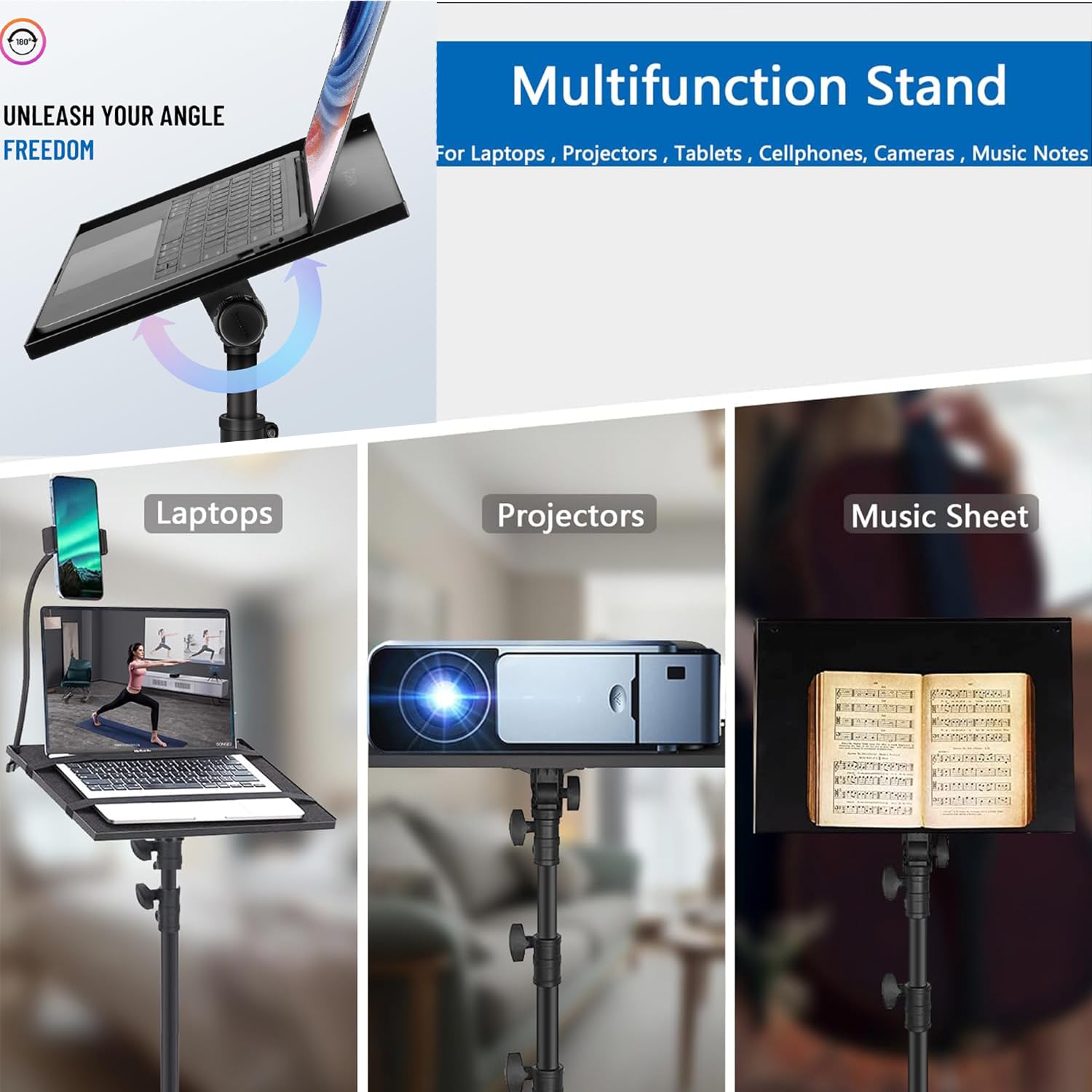 Brolaviya stand supports laptops, recorder, projectors, music notes, books, sound media equipment, etc.