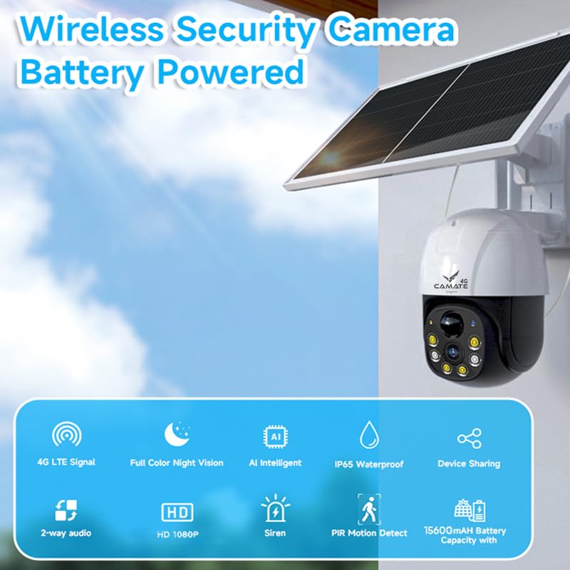 Camate Astrek Solar 3MP (4G Sim Based) PTZ Wireless Outdoor CCTV Camera | Night Vision, 2 Way Talk, Motion Track & Detect, Supports SD Card Upto 256 GB (Astrek Solar 4G)