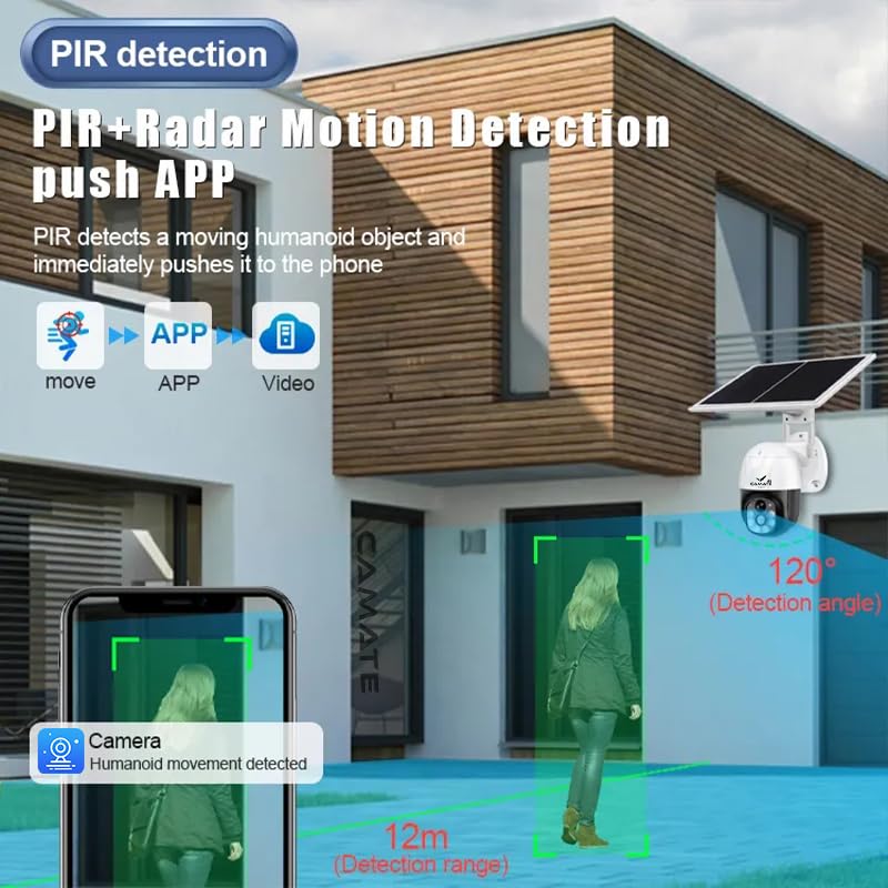 4G connection, scan the QR code to easily connect the camera, Area motion detection, Humanoid detection, Push alarm information