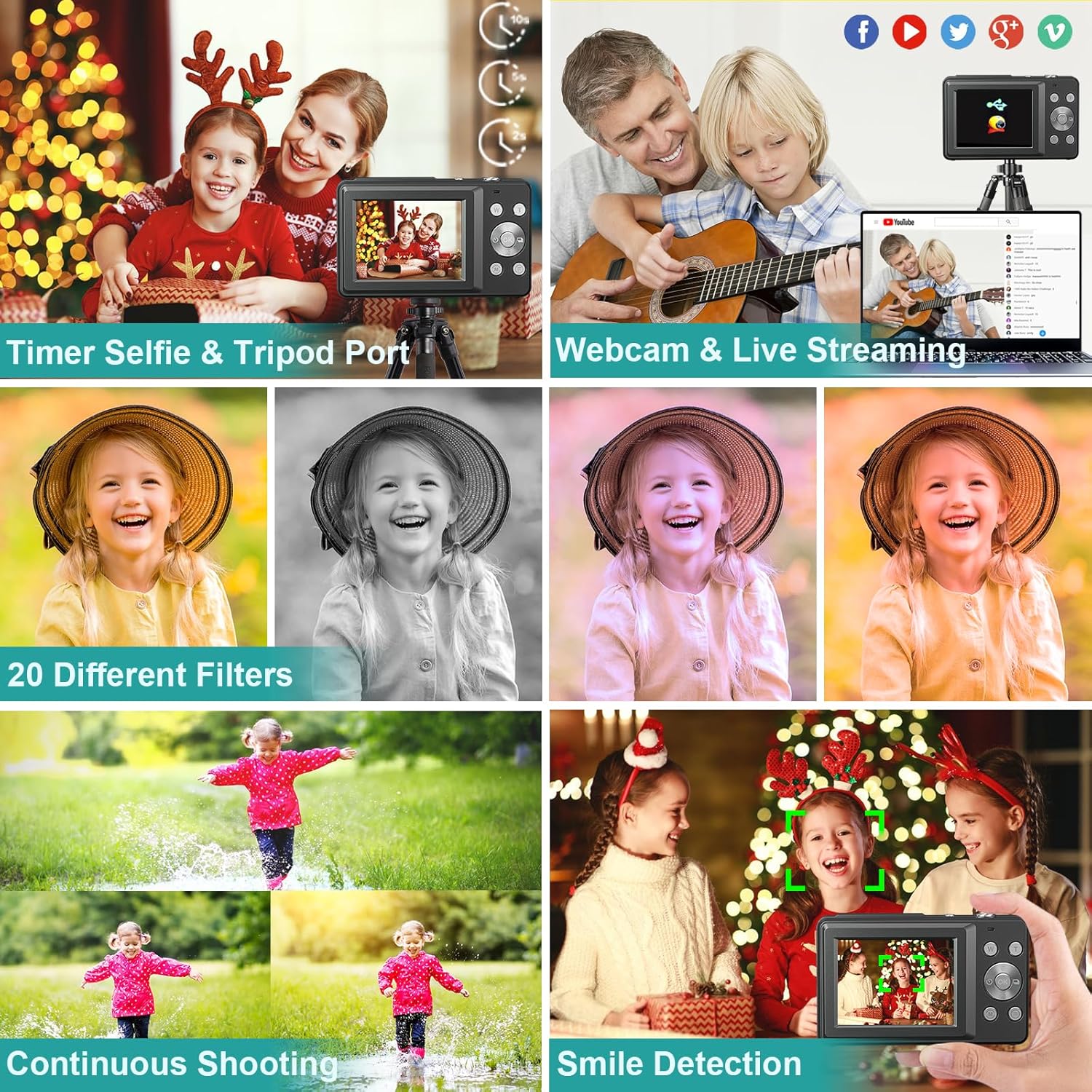 Digital cameras cheap and good for beginners, the best gift for children: Children can now have their own easy-to-use camera camera to take photos of the world instead of reaching for the mobile phone. As the first simple camera, the simplicity of functions and ease of use will make children continue to engage with photography. They have the opportunity to awaken their interest in a new craft and promote their creativity.