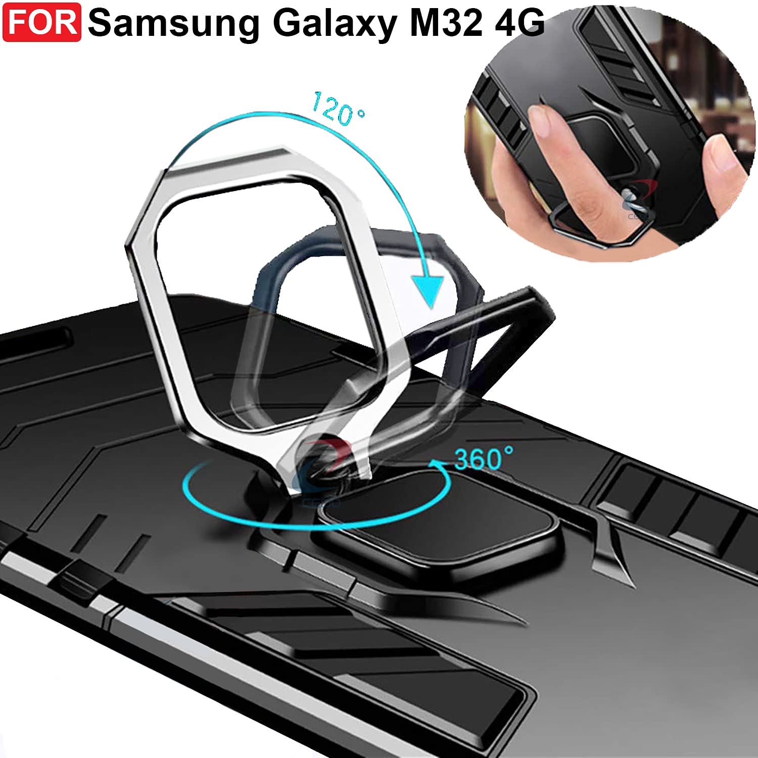 CEDO Rugged Samsung Galaxy M32 (4G) F22 (4G) Defender Case | Rotating Ring Holder & Kickstand in-Built | Military Grade Armor | Bumper Back Cover (Black)