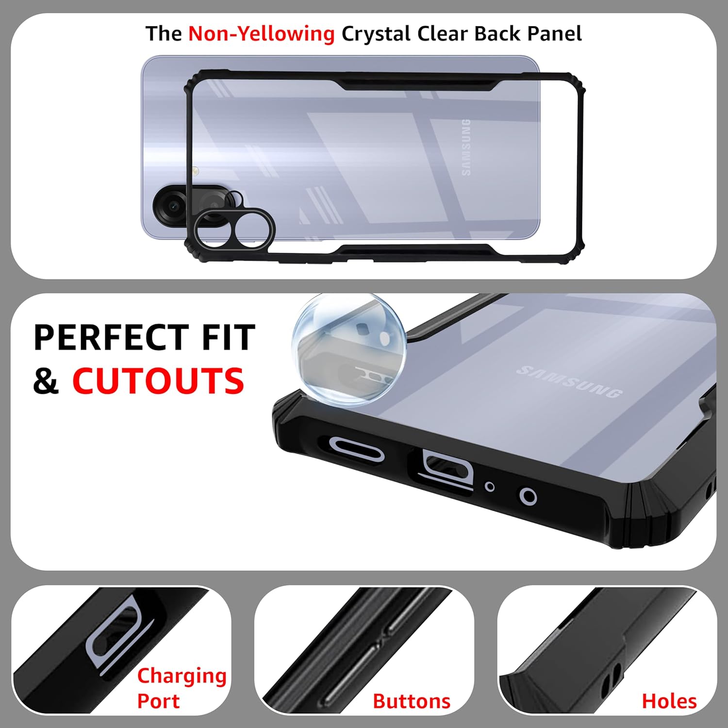 CEDO Samsung Galaxy A07 (4G) / A07 LTE (4G) Back Case Cover | Camera Protection Shockproof Bumper-Edge | Acrylic Crystal Clear 360 Degree Protection TPU+PC | Transparent Eagle Back Case Cover (Black)