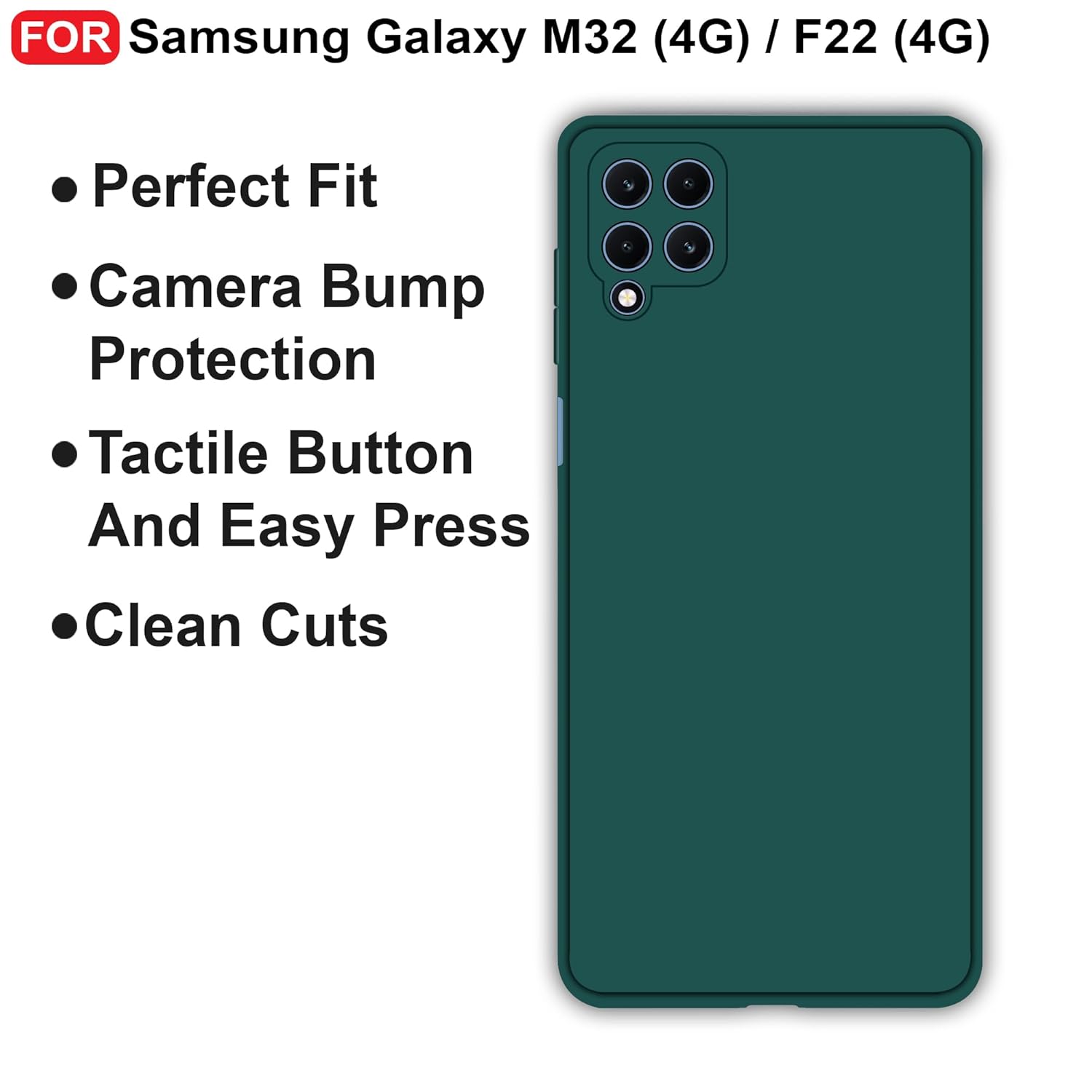 CEDO Samsung Galaxy M32 (4G) / F22 (4G) Back Cover | Camera Bump Protection & Inner Velvet Fabric Lining | Ultra Slim Matte Soft Rubberised Case Cover (Green)