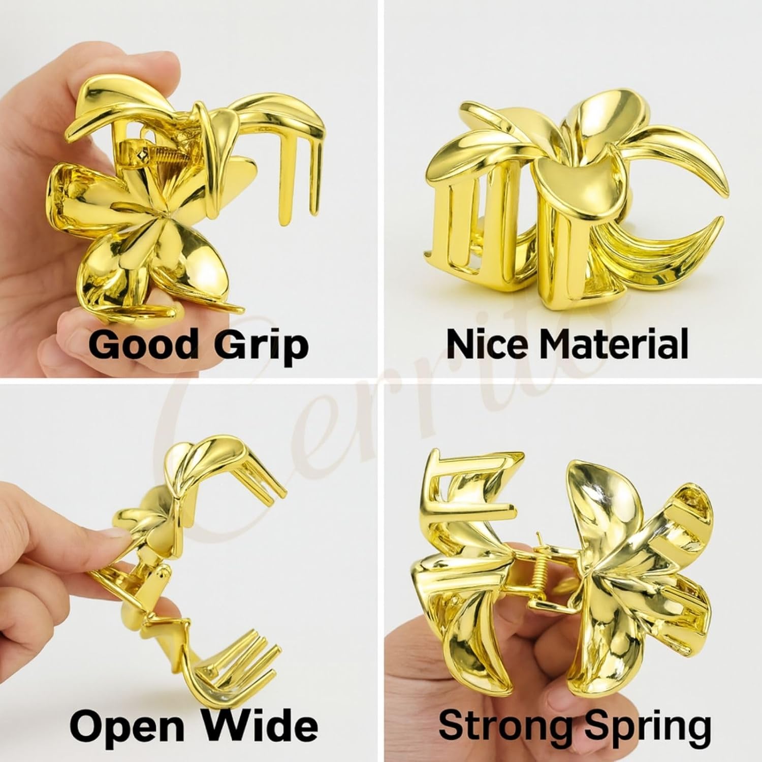 【Non-Slip Grip】Secure spring mechanism and wide claw design provide a firm hold, keeping hair in place without slipping or tugging.