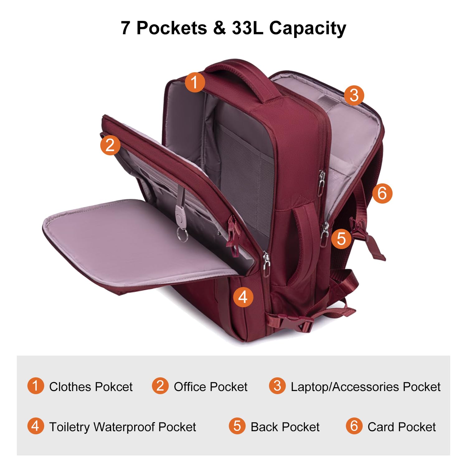 The Backpack is perfect for travel office and college. the 33L backpack comes with 7 compartments to storage your many items.clothes pocket/electronics pocket/office pocket/toiletries pocket/3*small pocket. the 180°opened pocket and the trolley strap design provide a travel experience. Backpack is made of 100% polyester and which is water-resistant and wear-resistant. This CHANTRIA backpack is a versatile women’s travel backpack.