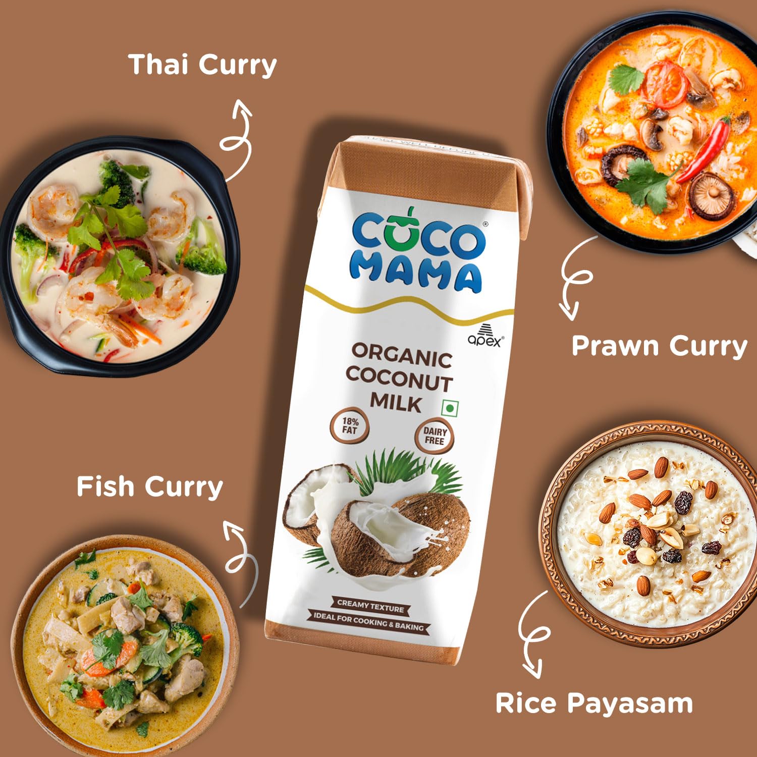 Coco Mama Organic Coconut Milk is extracted from highest quality Organic Coconuts from the coasts of Tamil Nadu and Kerala. Coco Mama Organic Coconut Milk has 18% fat which provides creamy taste and aroma making it ideal for cooking and baking. It is a great alternative to the dairy as a lactose free option. The taste of natural coconut milk enhances the flavour and experience of any dish you make. It’s rich and creamy taste pairs best with the coastal curries like Malabar, Goan, Thai and Bengali curries. It does not contain any added preservatives.