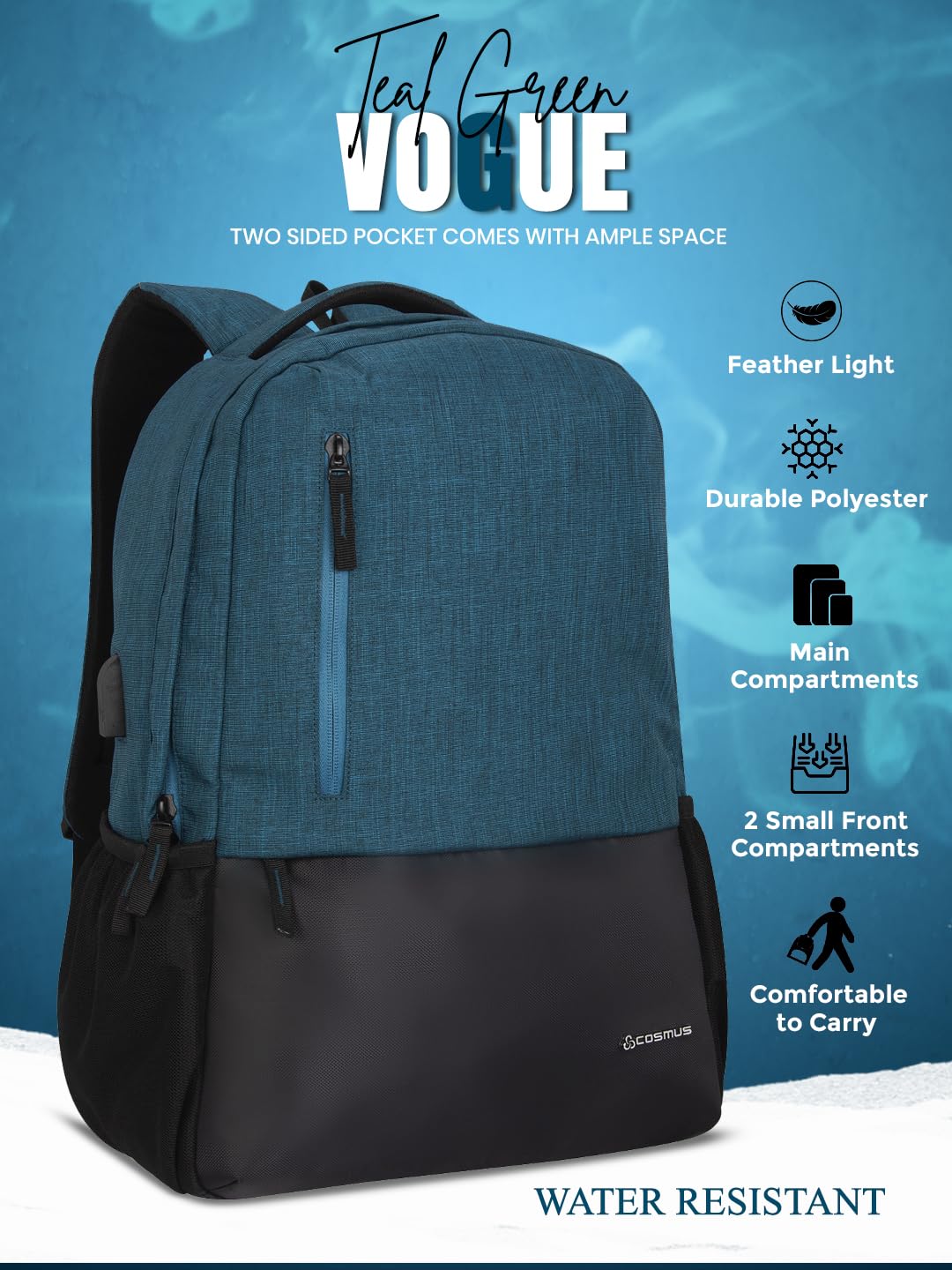 Cosmus Medium Size Vogue Casual Laptop Backpack With Usb Charger Port 46Cm 26 Litre T.Green College Bag