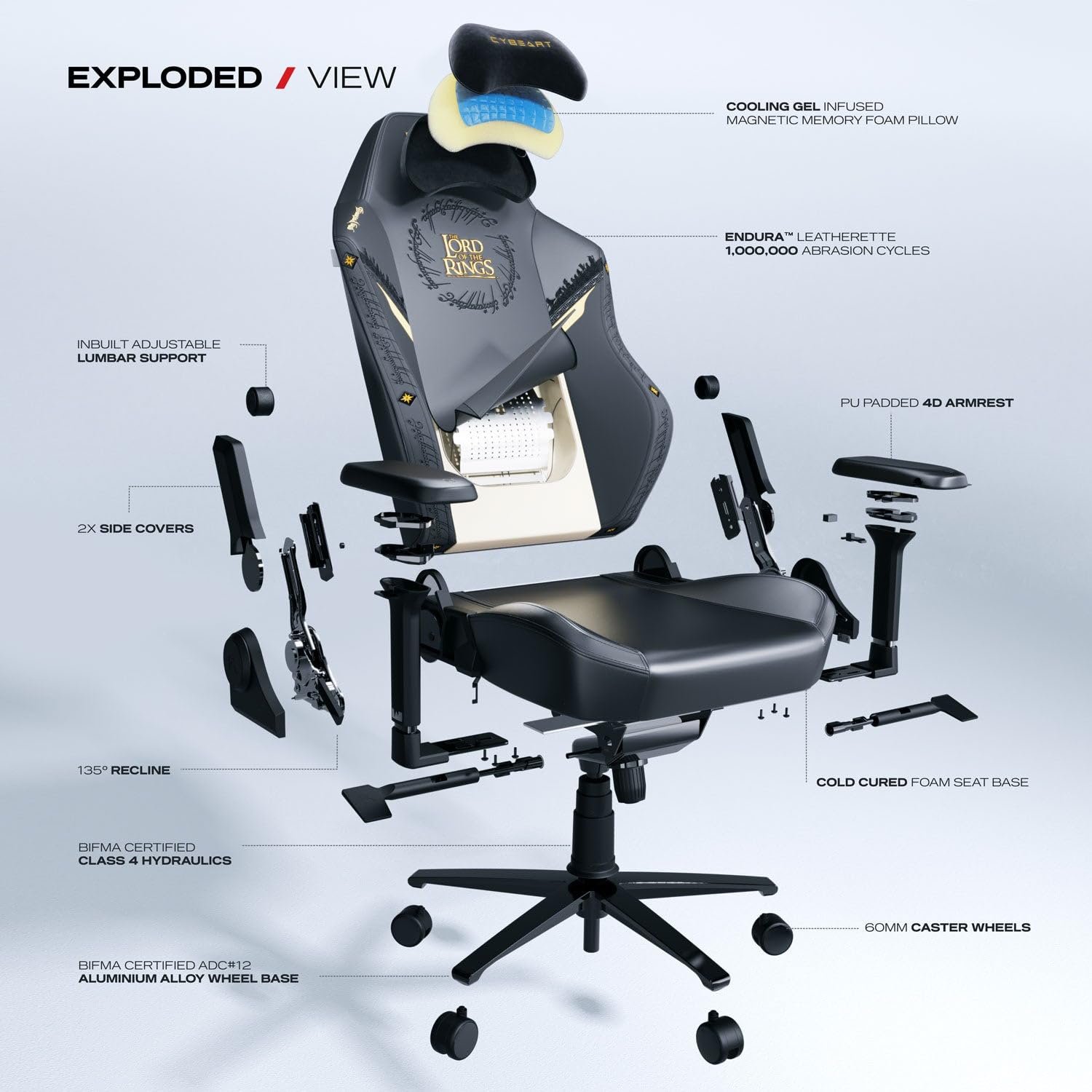 Cybeart | Lord of The Rings Black Edition Gaming/Office Chair | 4D Armrest | Inbuilt Lumbar Support | Supreme PU Leather, Ergonomic, Recline & Tilt