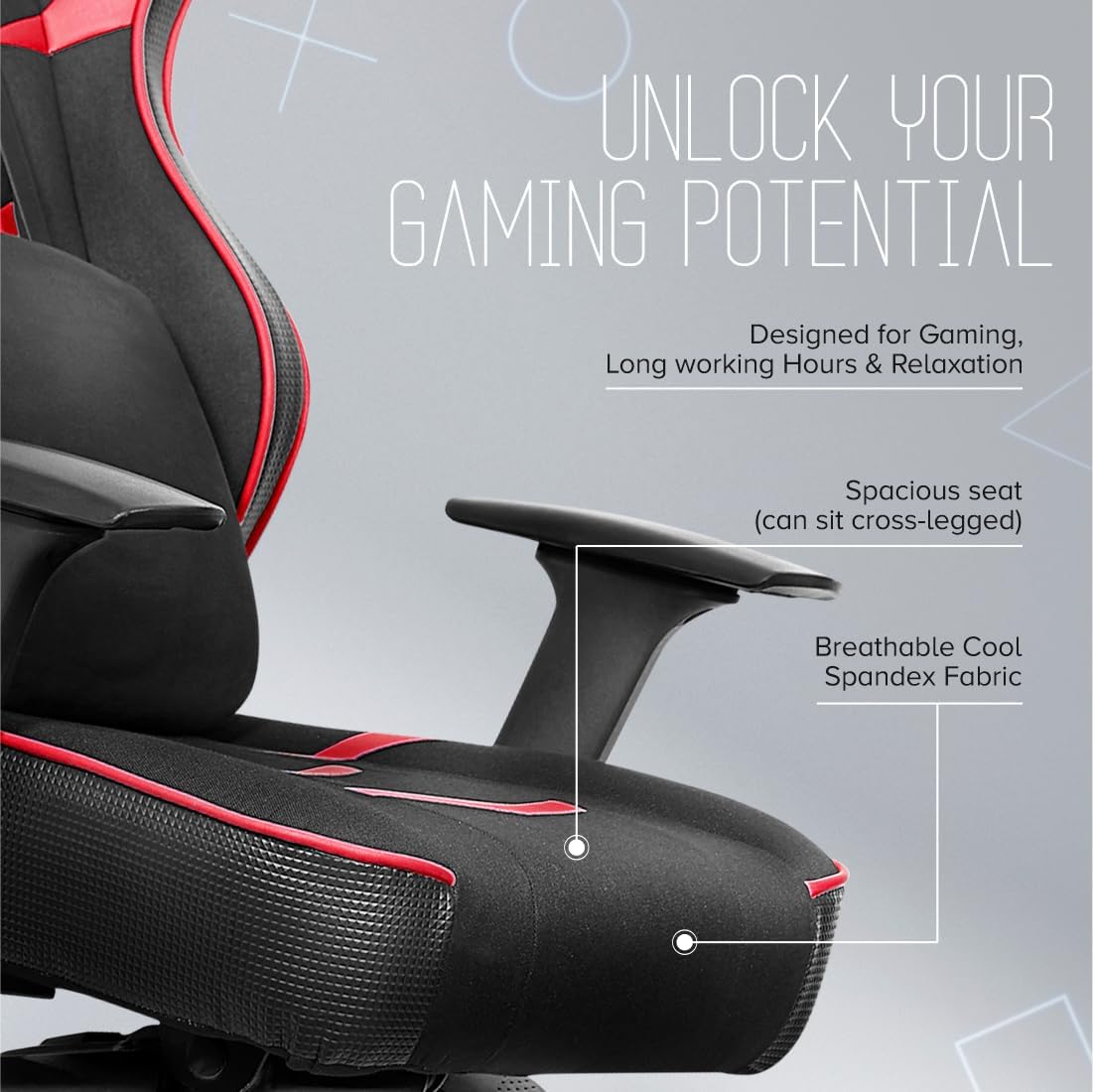 Da URBAN Mustang Ergonomic Gaming Chair with PU Leatherette Fabric, Adjustable Neck & Headrest with Pillow, 4D Adjustable Armrests & Heavy Duty Metal Base (Red)
