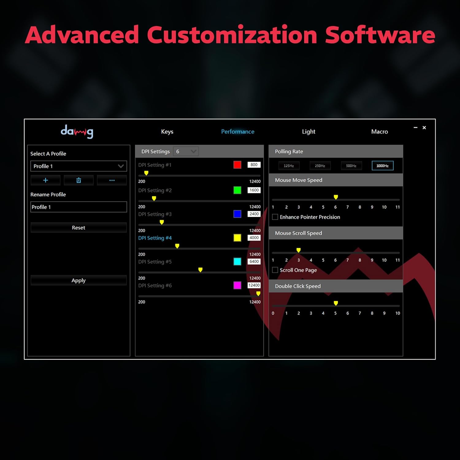 HIGH PRECISION CONTROL: Built for accurate gameplay, adjustable upto 12,400 DPI with an indicator, allows smooth sensitivity switching for different play styles