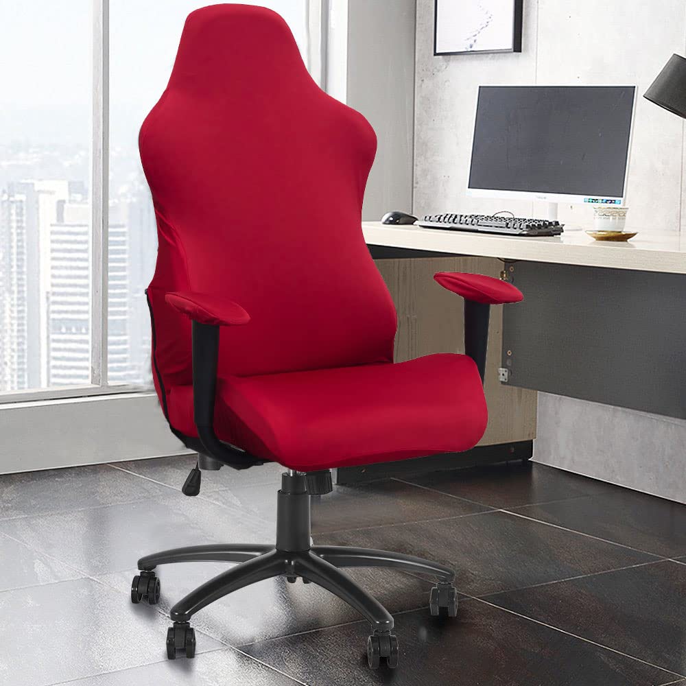Deisy Dee Slipcovers Cloth Stretch Polyester Chair Cover for Reclining Racing Gaming Chair (Only Chair Covers) (red)
