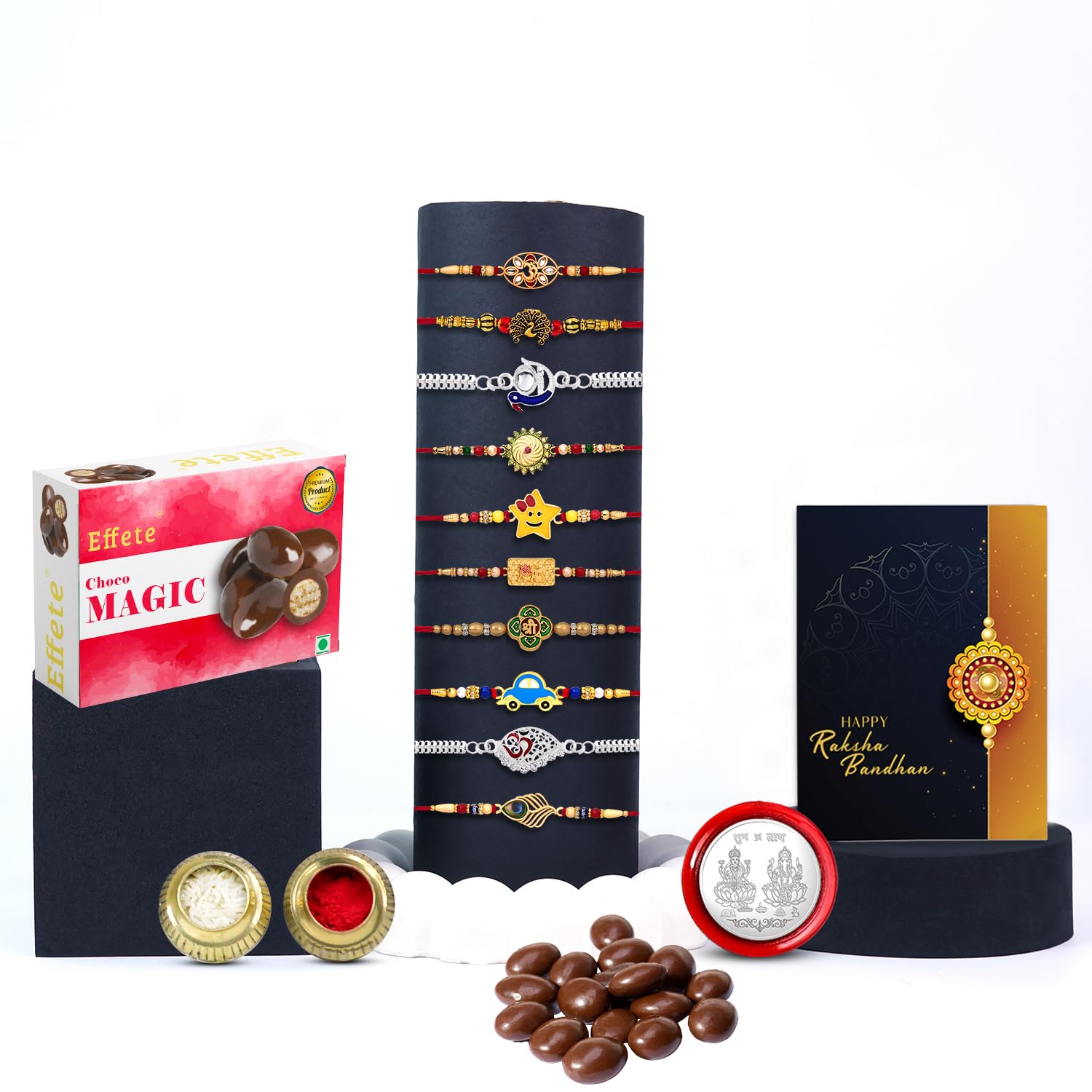 This set is ideal for joint families and those with many cousins, ensuring everyone gets a unique rakhi