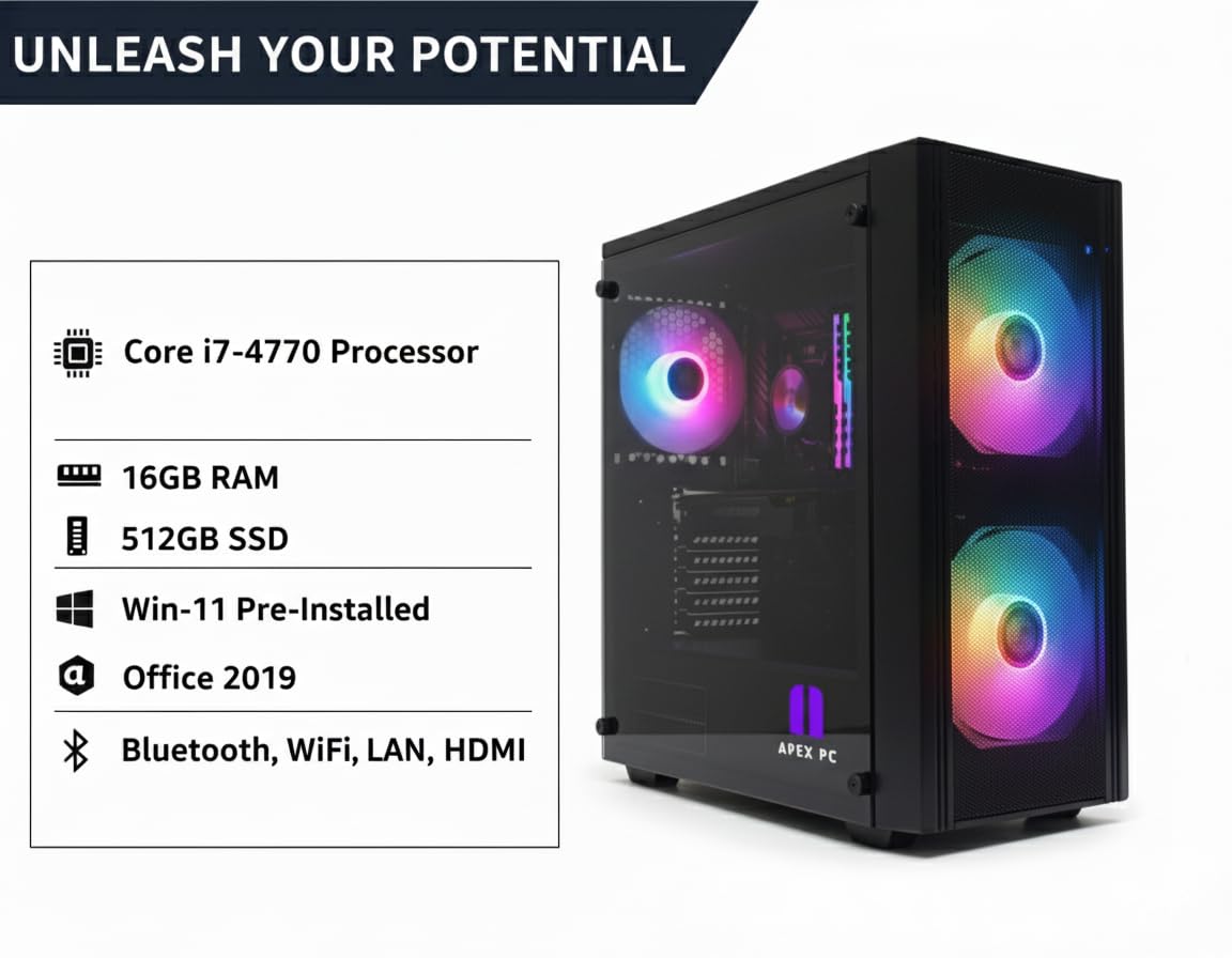 Desktop Computer Core i7-4770/TE, 16GB RAM | 512GB SSD | HD Graphics 4600 | WiFi 6 5G | Bluetooth | LAN, HDMI, VGA | Windows 11 & Office 2021| 2 Year Warranry | Basic Software Installed