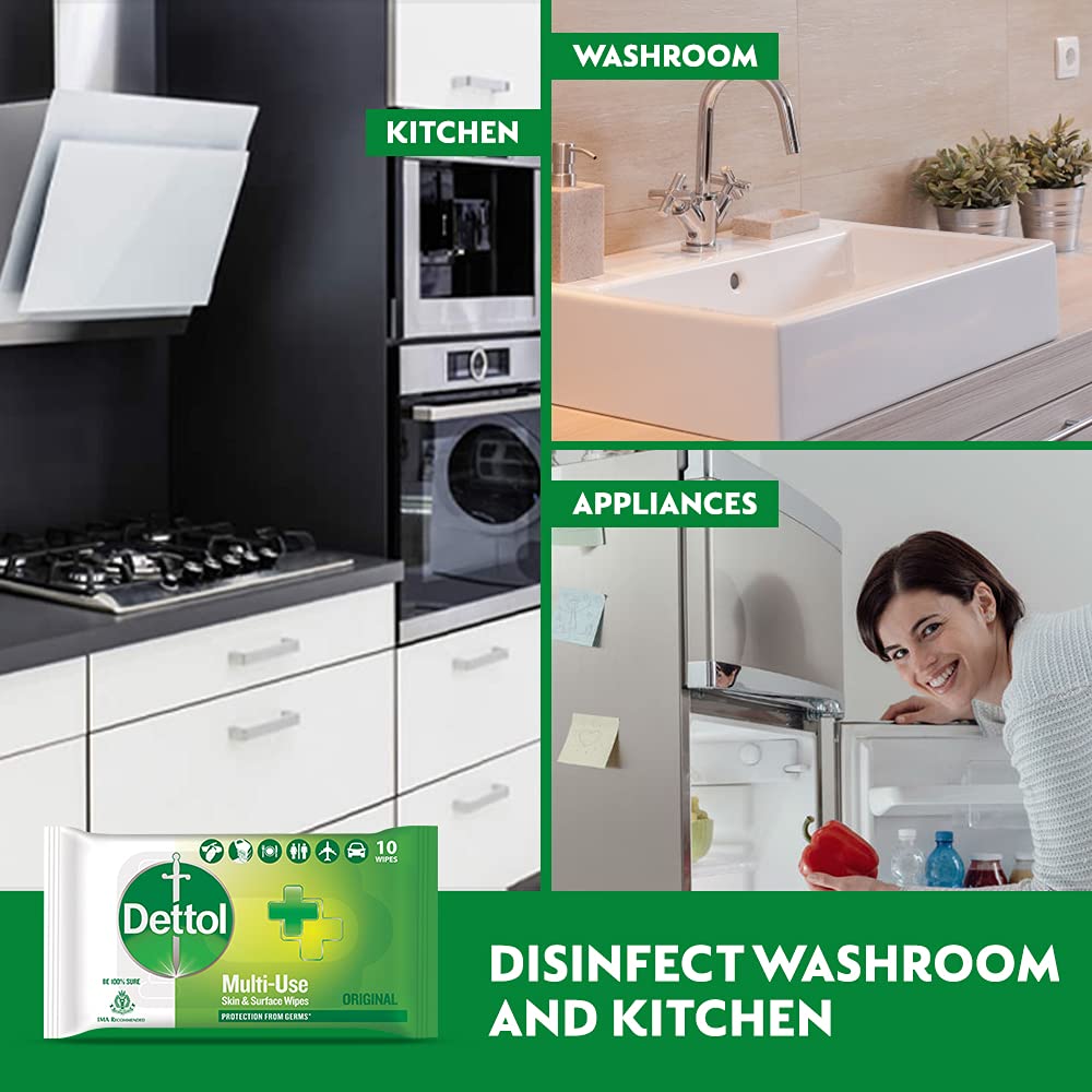 Generic Name : Dettol Disinfectant Skin & Surface Wipes, Original – 10 Count, Safe on Skin, Ideal to Clean Multiple Surfaces, Resealable lock-lid