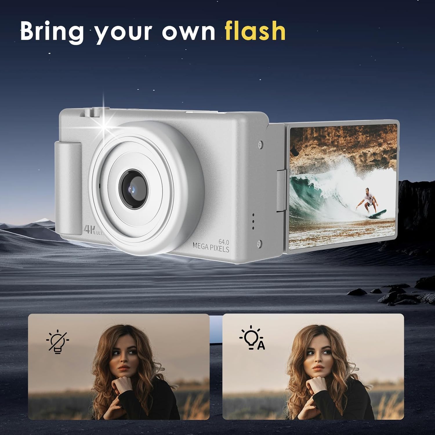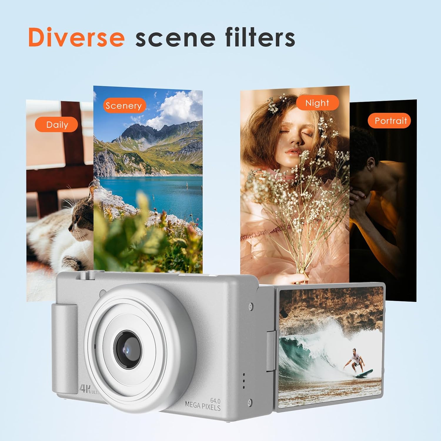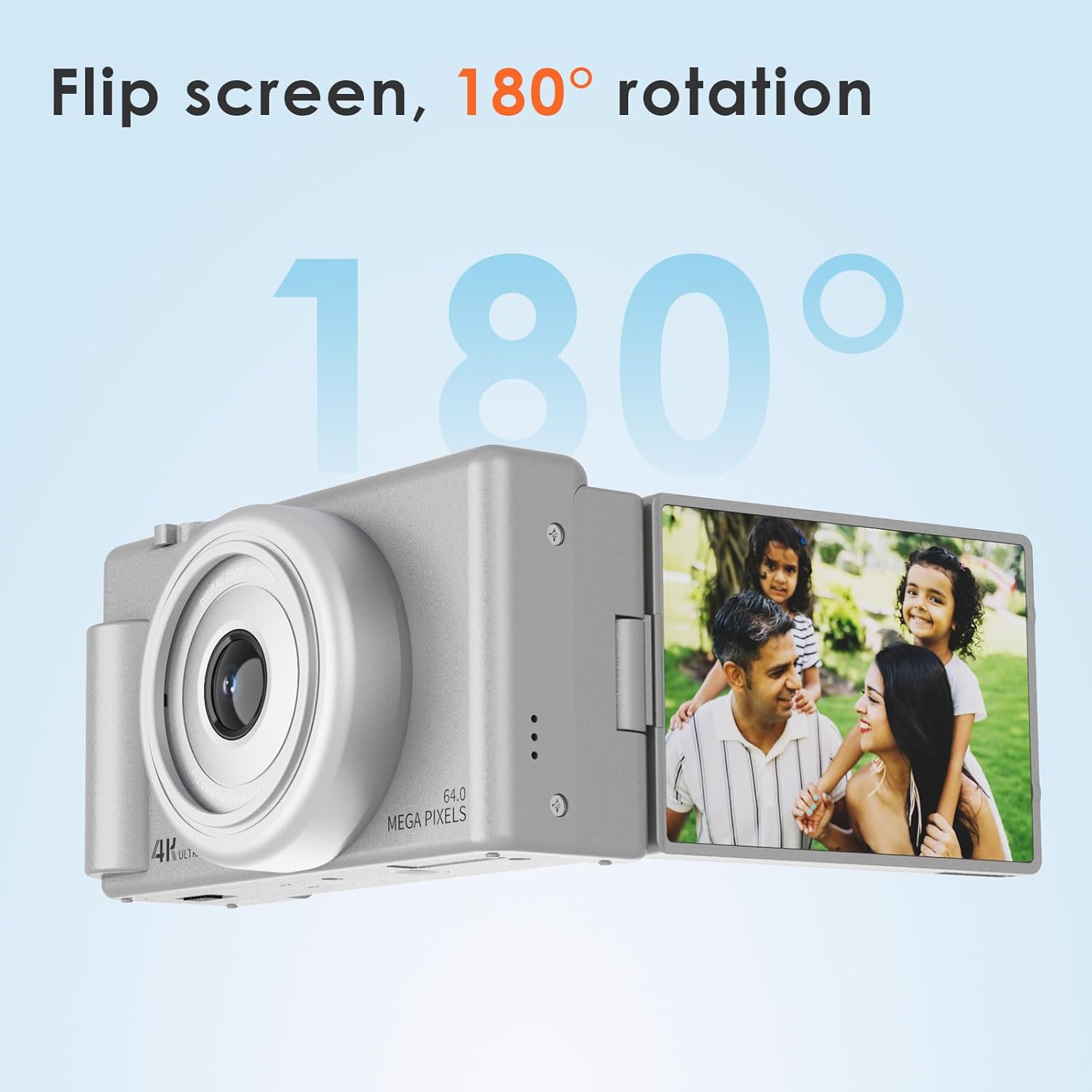 2025 Premium 4K Digital Camera – 64MP Photography & Vlogging Camera with Flip Screen Capture life’s moments in stunning detail with this compact digital camera—perfect for photography and vlogging. Featuring 4K video and 64MP photos, it delivers professional-quality imaging in a small, travel-friendly body. The 180° flip-up touchscreen makes it the ideal vlog camera for solo creators, with 16X zoom, 32GB SD card, rechargeable battery, Whether you’re a YouTuber, traveler, or photography enthusiast, this all-in-one camera is your perfect creative companion. Lightweight, easy to use, and ready to shoot!