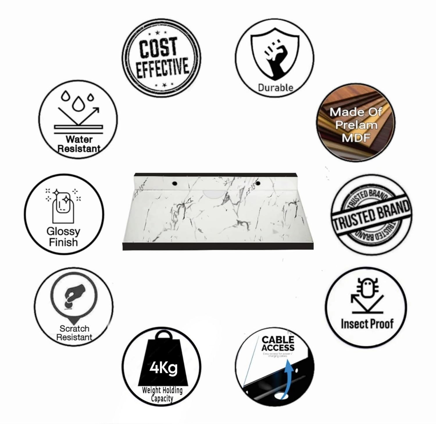 Dime Store Engineered Wood Setup Box Stand | Set Top Box Stand Wall Mount for Home Wall Shelf for Holding Speakers WiFi Router Game Console Remote Streaming Device (White)
