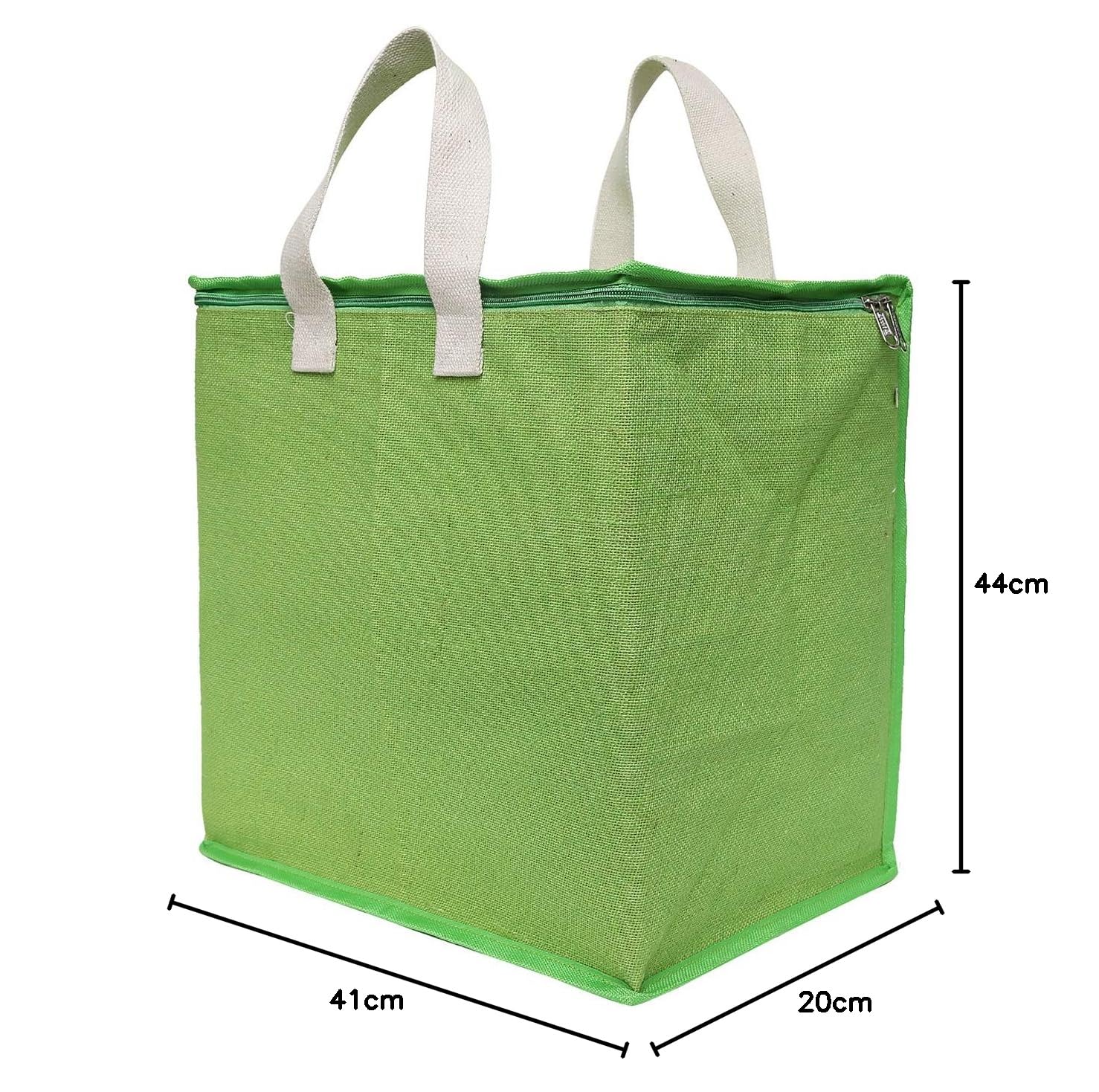 DOUBLE R BAGS Jute Grocery Shopping Vegetable Bag with Reinforced Handles , Underbed Storage Bag with Zip (Green)-Combo of 2