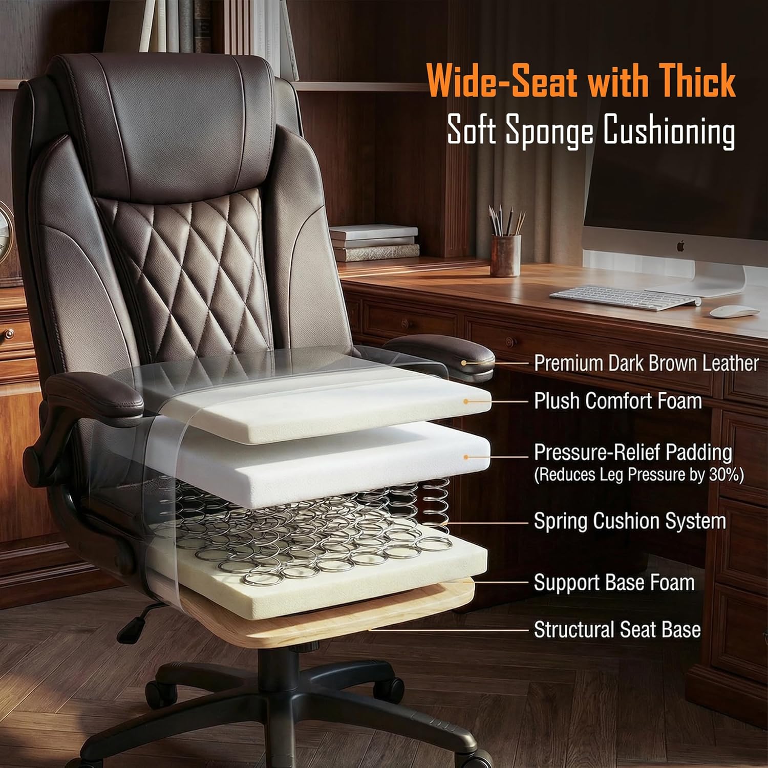DROGO Dominus Ergonomic Office Chair for Work from Home | Computer Chair for Study | PU Leather Executive Boss Chair with Flip-Up Armrest, Wide Cushion Seat, Lumbar Support & Recline (Brown)