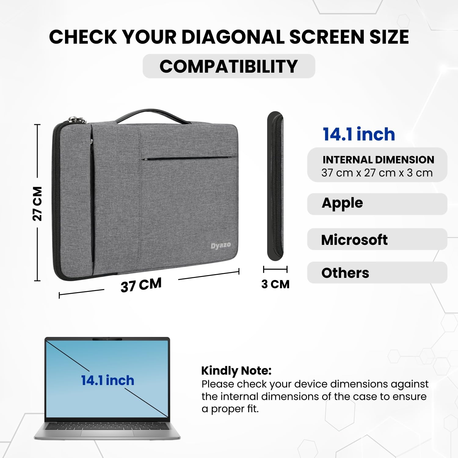 Perfect Fit for 14.1 Inch Laptops: Designed to securely accommodate 14.1 inch laptops and notebooks, this sleeve is compatible with MacBook, Dell, Lenovo, Asus, Acer, HP, Samsung, Surface Pro & All Other Notebooks leading brands, ensuring a snug and protective fit.