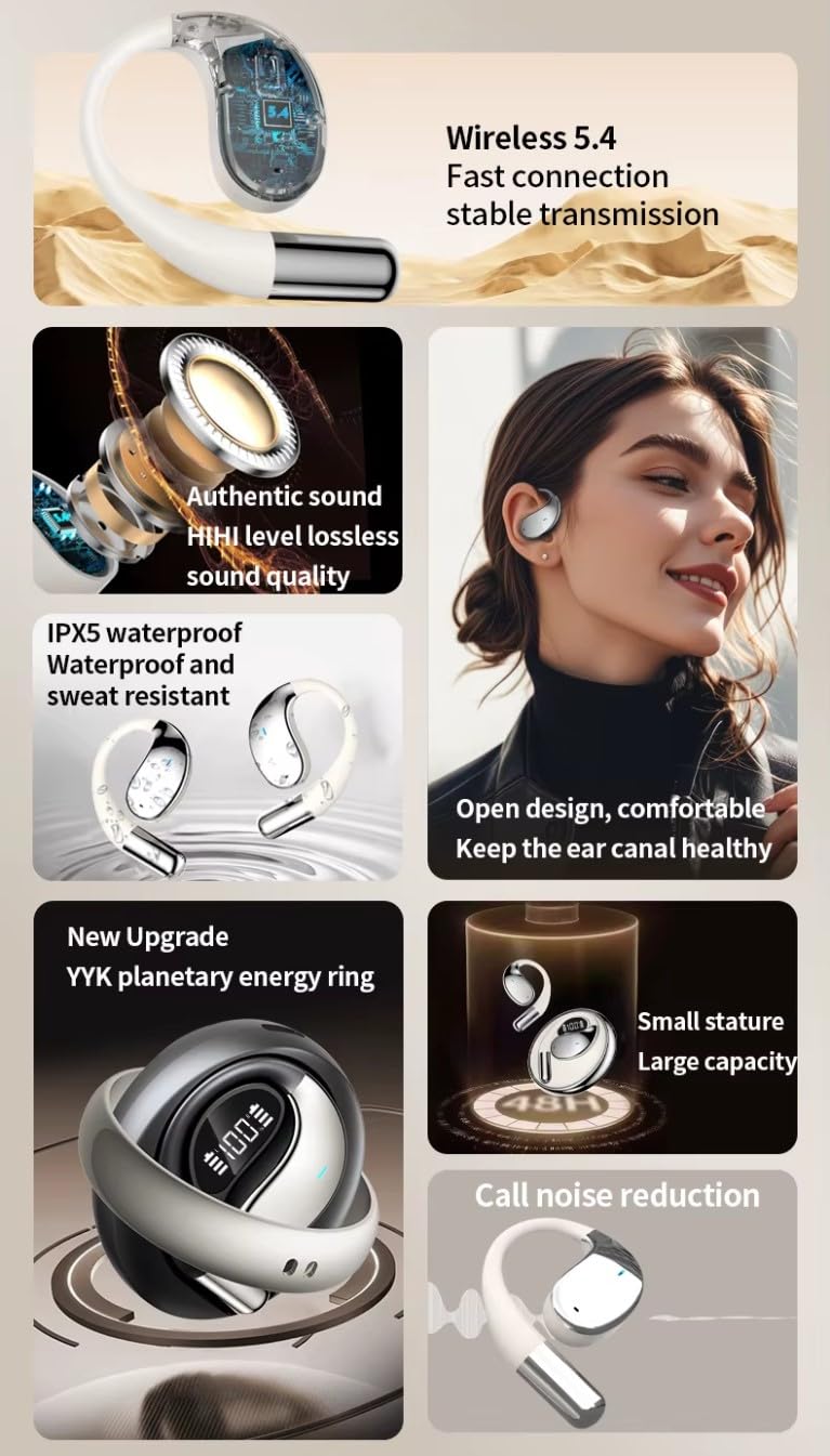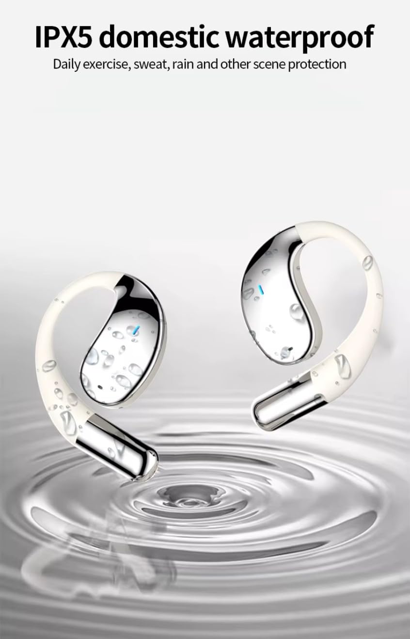 【Ergonomic Comfort】Designed for comfort, the open-ear ergonomic style provides a secure fit without pressure on the ears, making them feel almost weightless for all-day wear