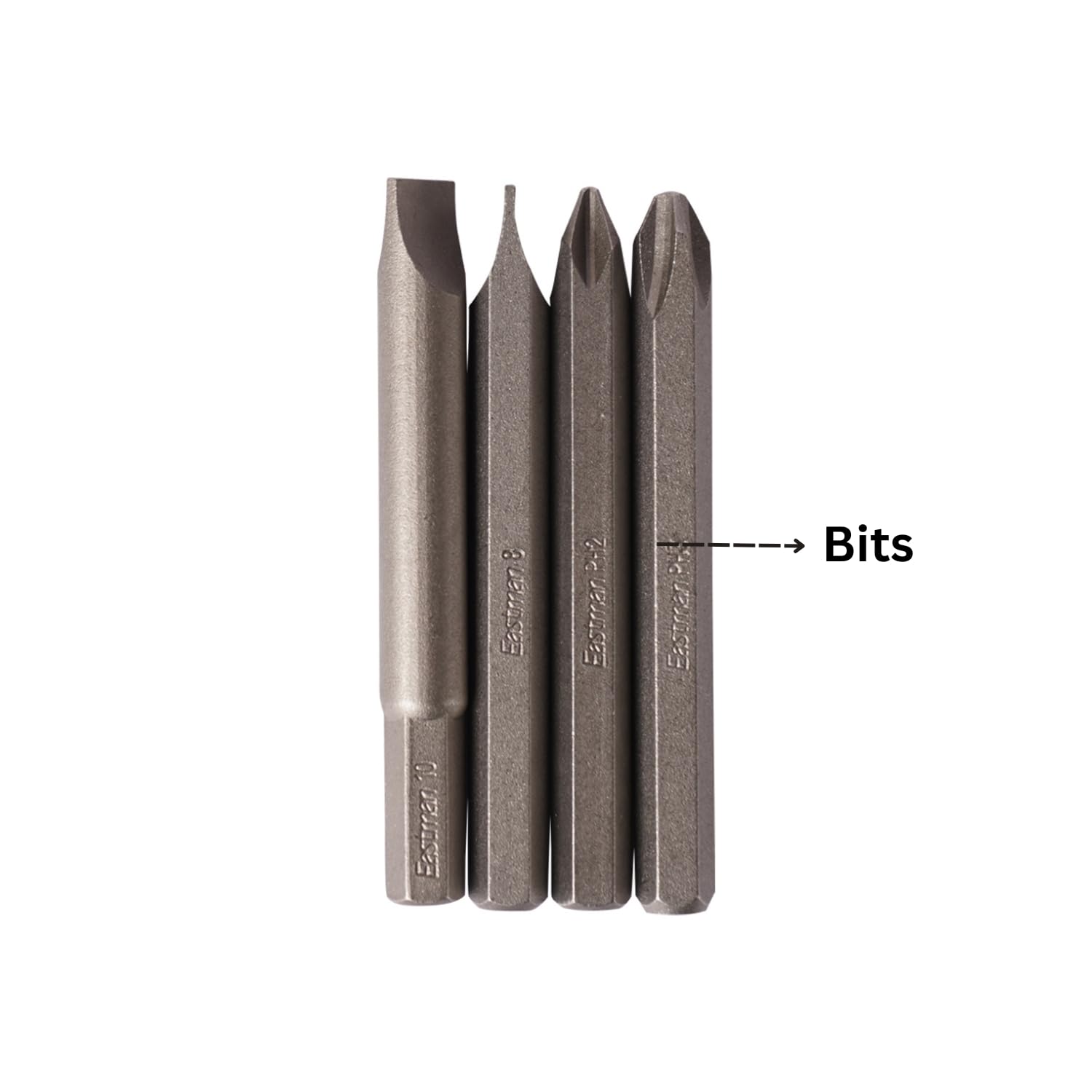 Eastman Impact Driver Bit Set Of 4Pcs, 80Mm, Chrome Vanadium 5/16″ Hex Bit In Sand Finish Long Type – EID-5002, Carbon Steel